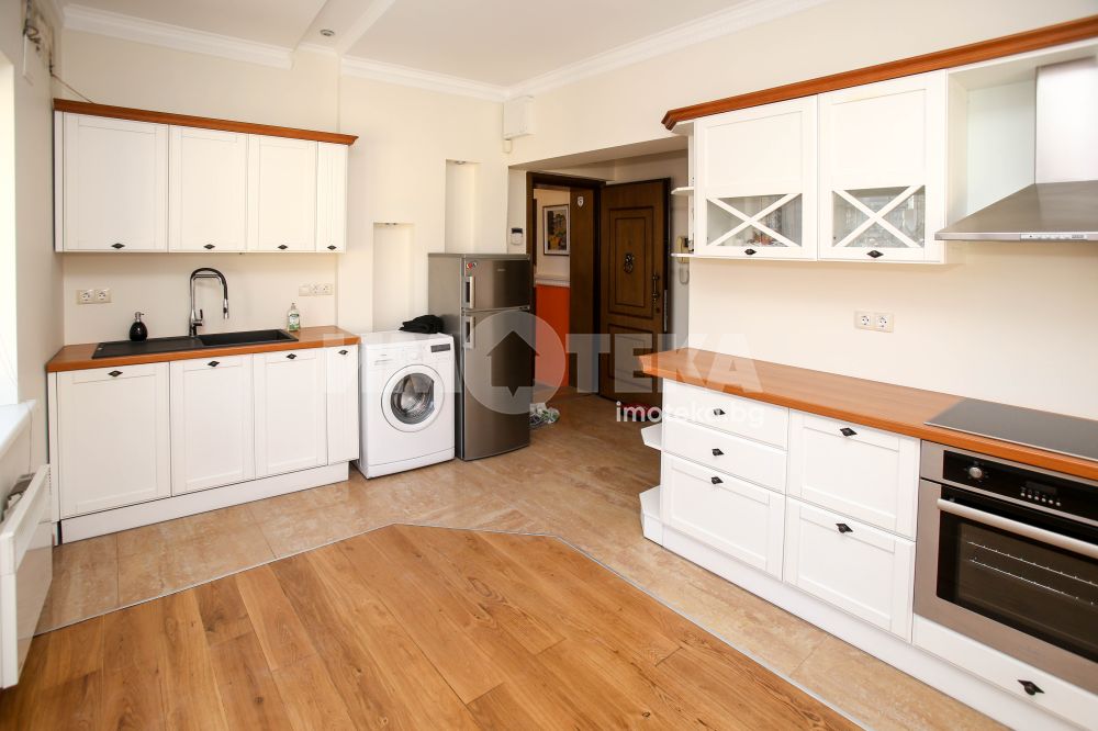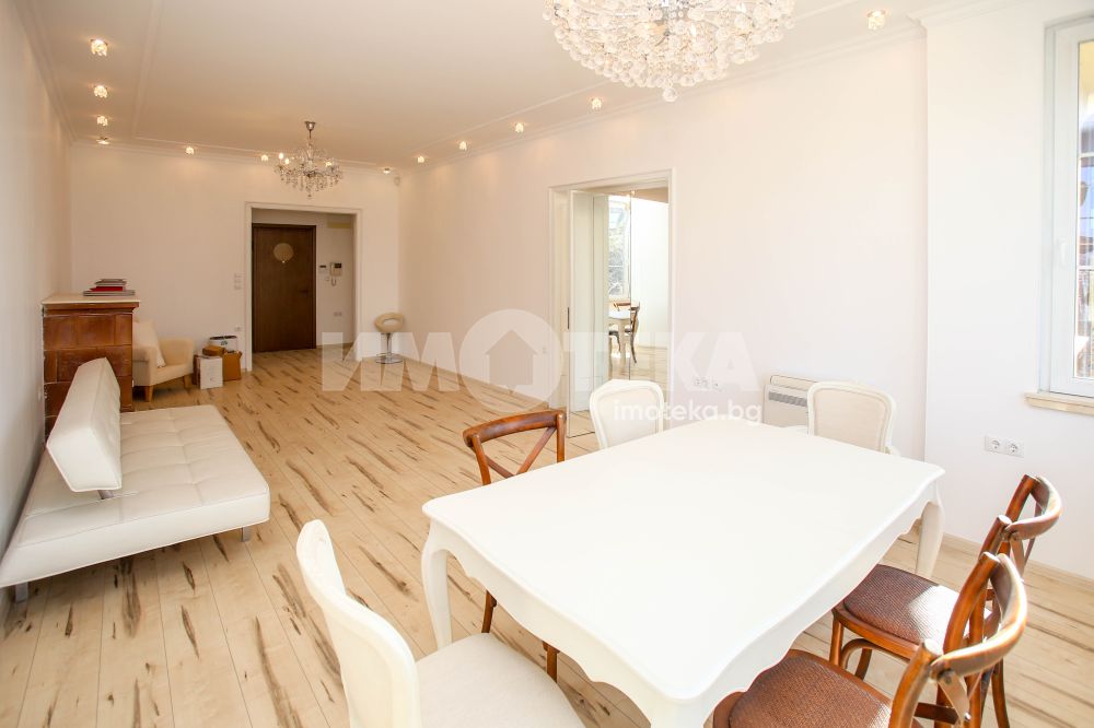 Предлагаме под наем рядко срещан аристократичен жилищен имот – етаж от къща с история, напълно реновирана, разположена на една от най-елитните и тихи локации в идеалния център на София.
