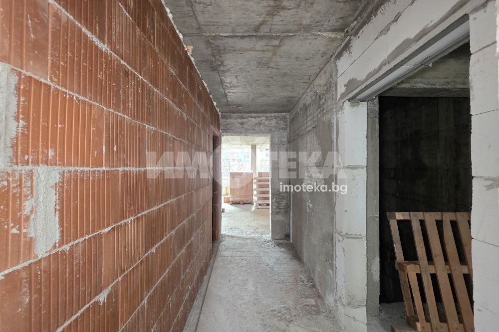 Тристаен апартамент в новострояща се сграда със следното разпределение, входно антре, дневна с кухненски бокс, две санитарни помещения, склад, две спални и два балкона.