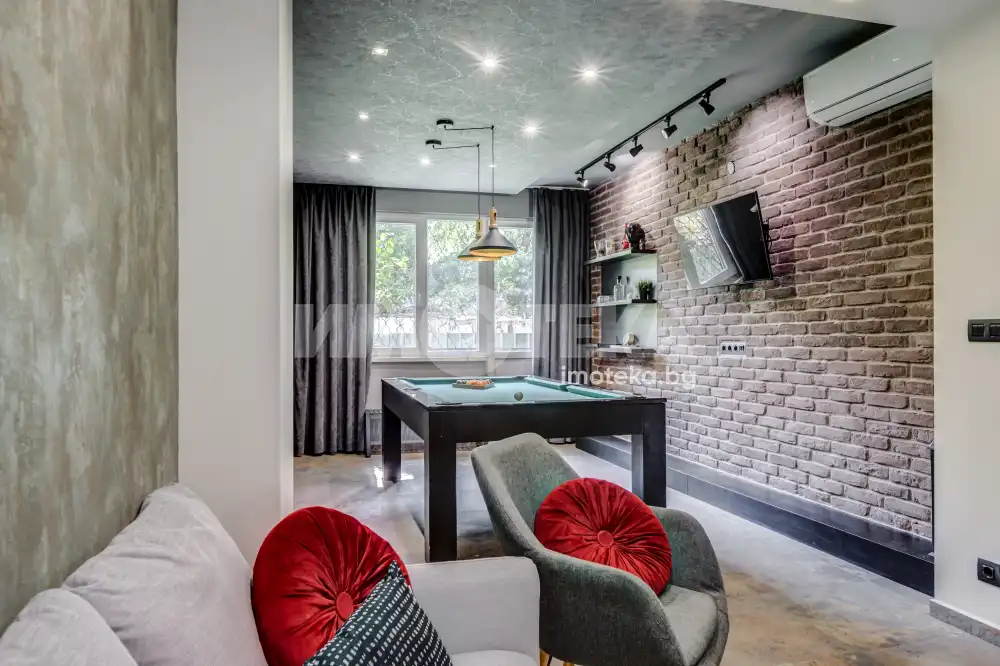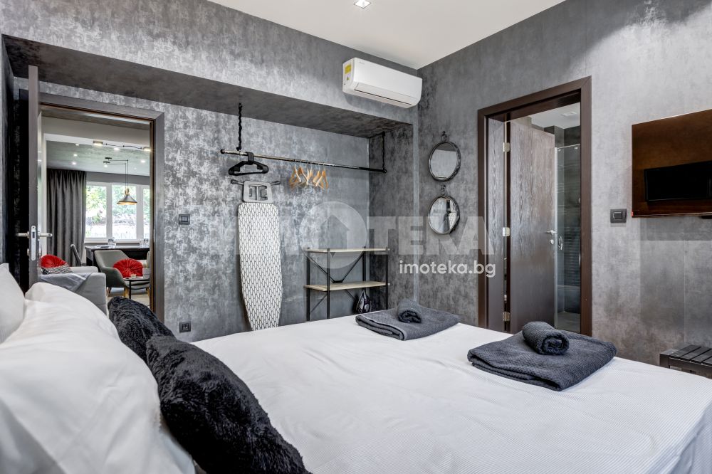 Обзаведен тристаен апартамент на отлична локация. Състои се от антре, мокро помещение, спалня, баня, хол с кухненски бокс и тераса , преход от хол към втора спалня със собствена баня. Височина на таваните 3 метра. Към имота има таван и мазе. Идеален за отдаване на нощувки в платформи като Airbnb и Booking.com