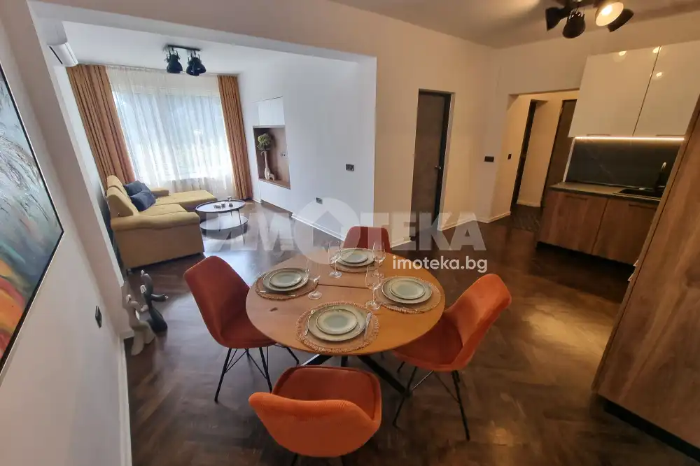 Луксозно обзаведен апартамент по дизайнерски проект. Разполага с възможност, за допълнително намемане на паркомясто.