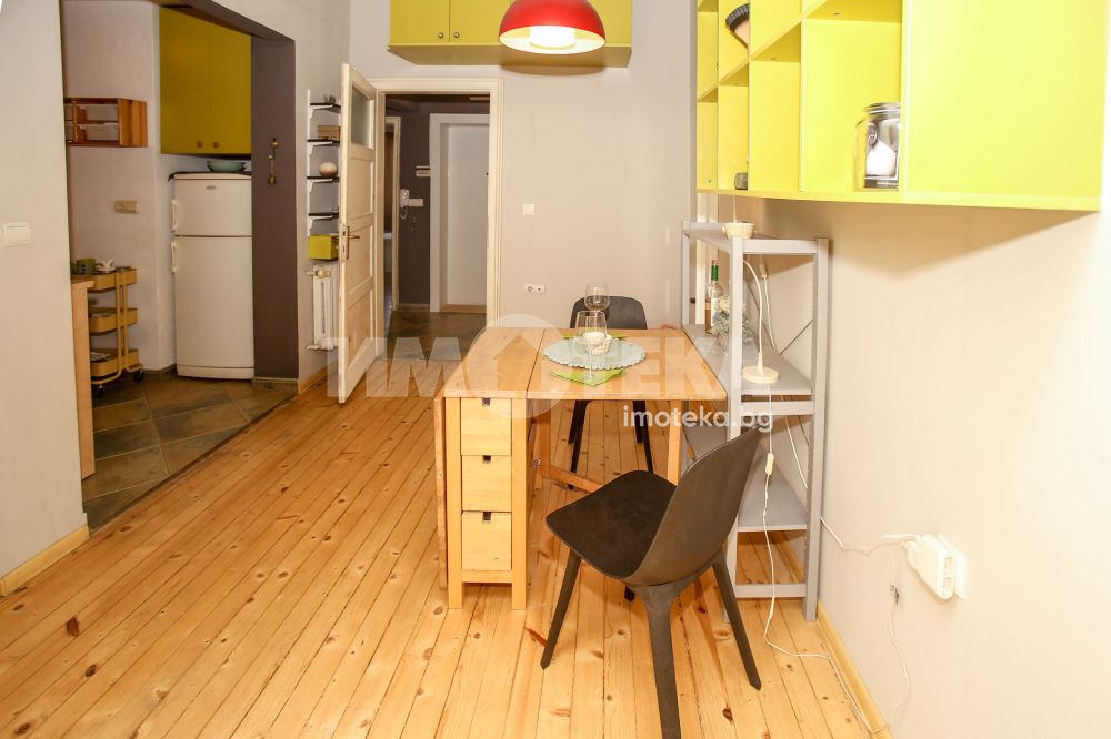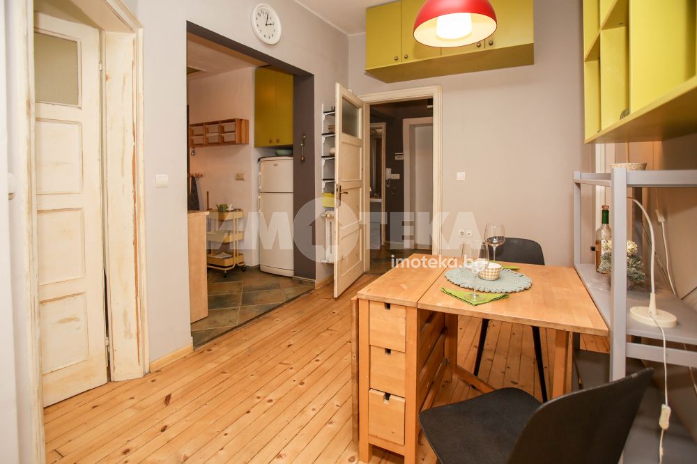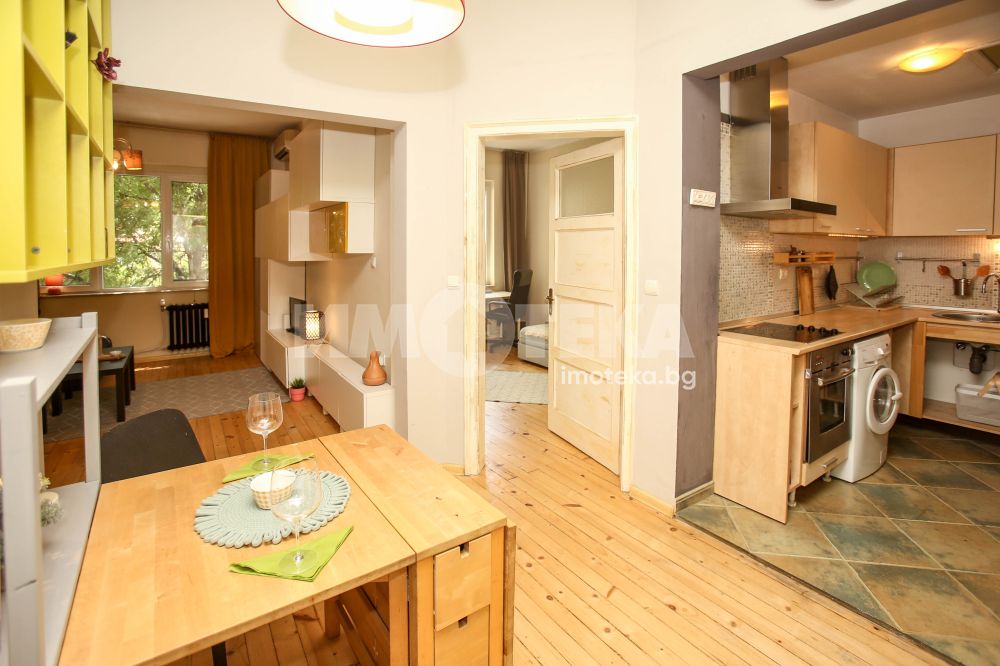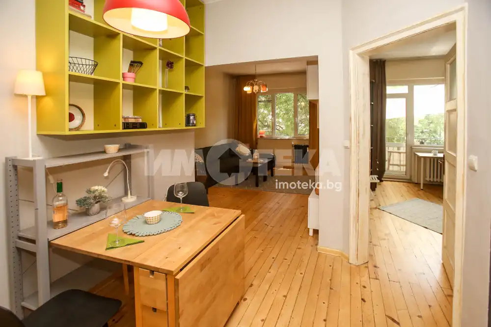 Предлагаме за продажба изключително уютен и светъл тристаен апартамент с площ от 74 кв.м, разположен на емблематичната ул. Любен Каравелов – една от най-желаните и престижни локации в столицата. Жилището се състои от две спални, просторна всекидневна с кухненски бокс, баня с тоалетна и кокетна тераса. Допълнително удобство е включеното таванско помещение от 9 кв.м, което е направено на кабинет, ателие или кът за хоби. Апартаментът впечатлява с високи тавани, които внасят усещане за аристократичен уют, въздух и светлина. Автентични дървени интериорни врати.