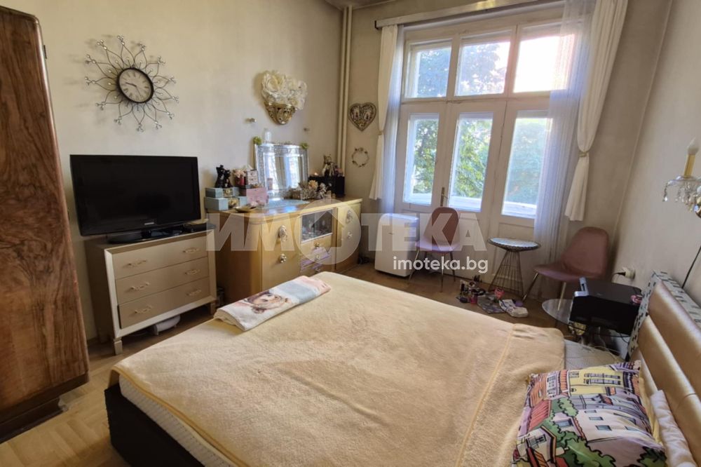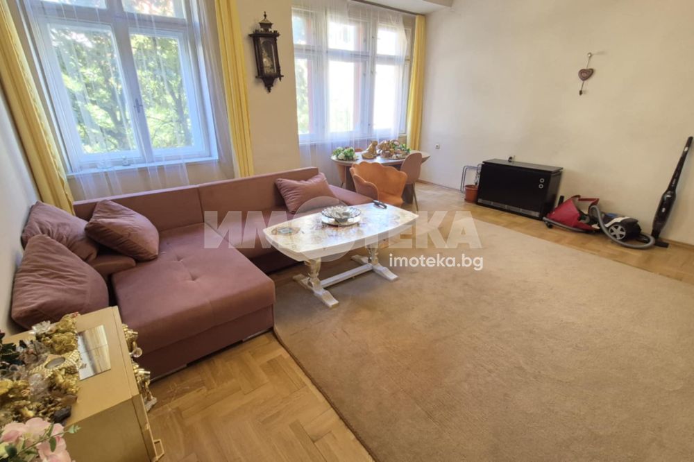 Предлагаме Ви прекрасен имот - тип тристаен, обзаведен апартамент с отделна кухня в сърцето на града, пешеходната част на бул. Витоша. Състои се от входно антре, просторен хол, две непреходни спални с балкони, кухня с балкон, баня, отделна тоалетна.