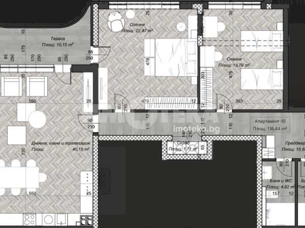Предвидена е богато озеленена общодостъпна покривна тераса в акцентната зона на сградата – зоната на пробива.