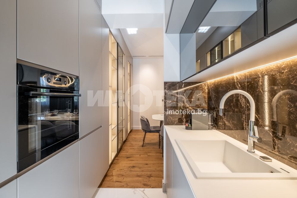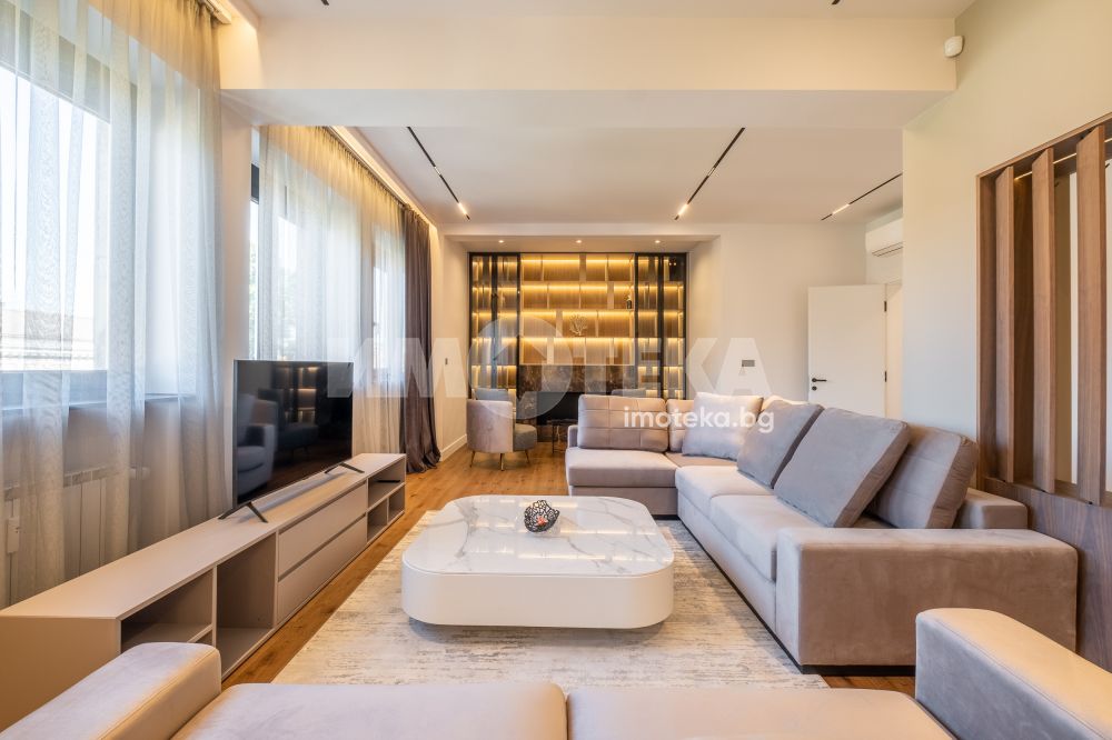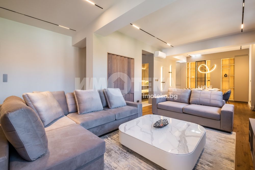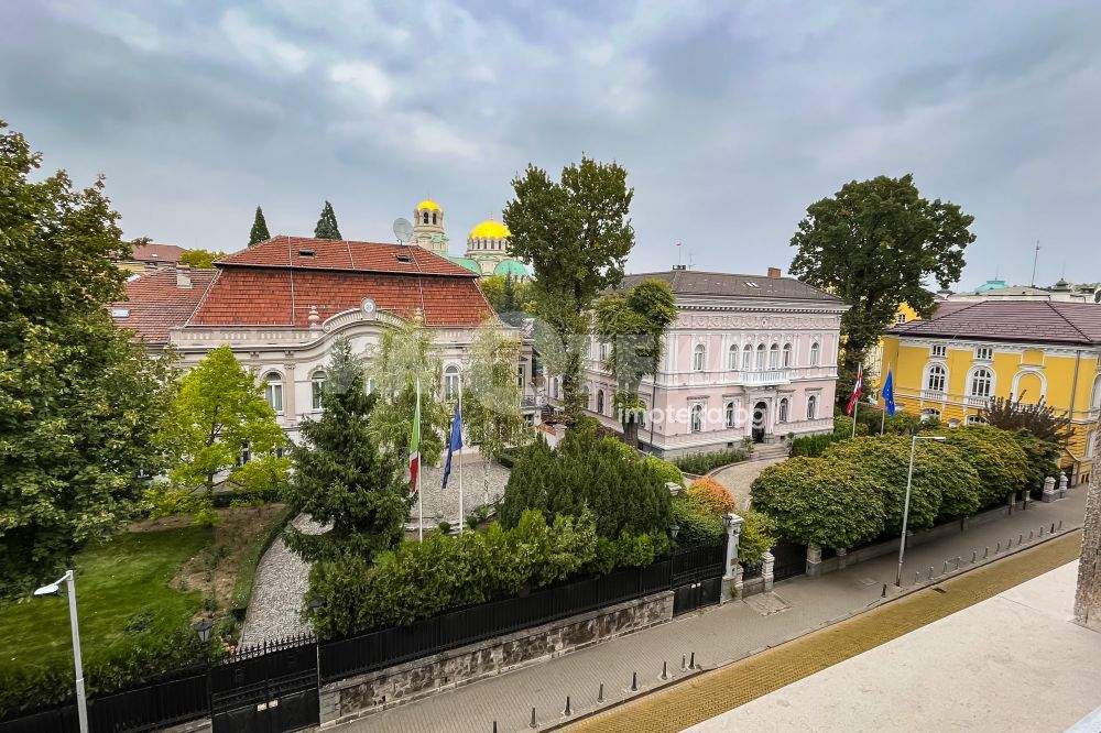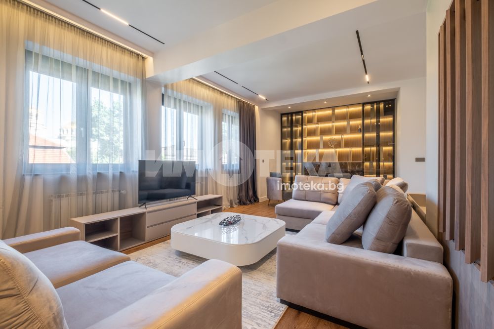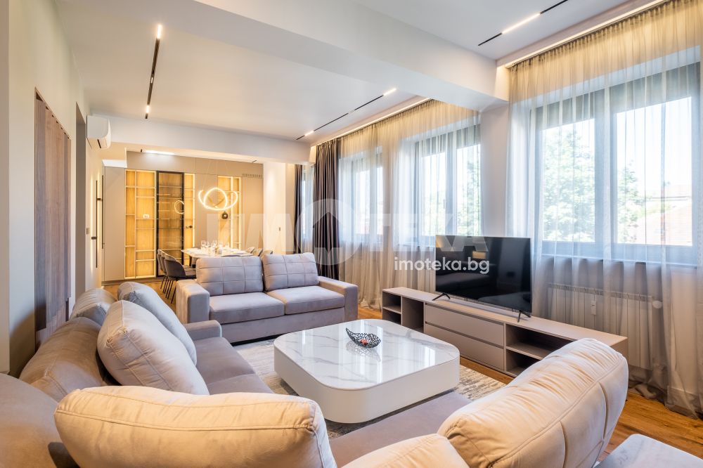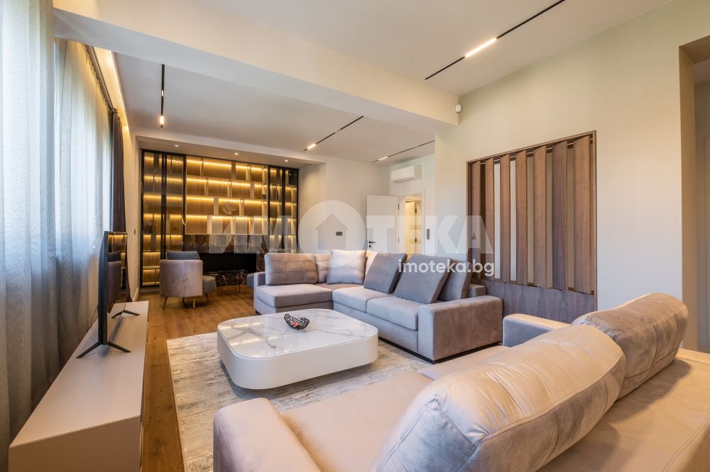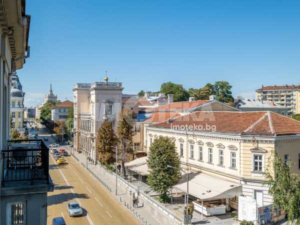 Тристаен луксозен апартамент в най-представителната част на столицата, срещу посолството на Италия и в непосредствена близост до пл. Народно събрание и Военния клуб. Имотът се състои от две спални, просторна дневна с изглед към бул. Цар Освободител, кухненски бокс с най-модерна вградена техника, баня с тоалетна и отделна тоалетна. Към имота има и мазе 6.97 кв.м. и таван 12.70 кв.м.