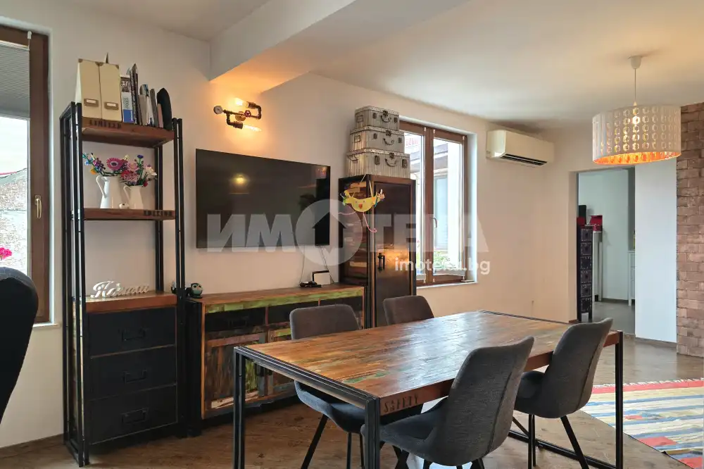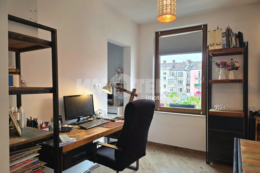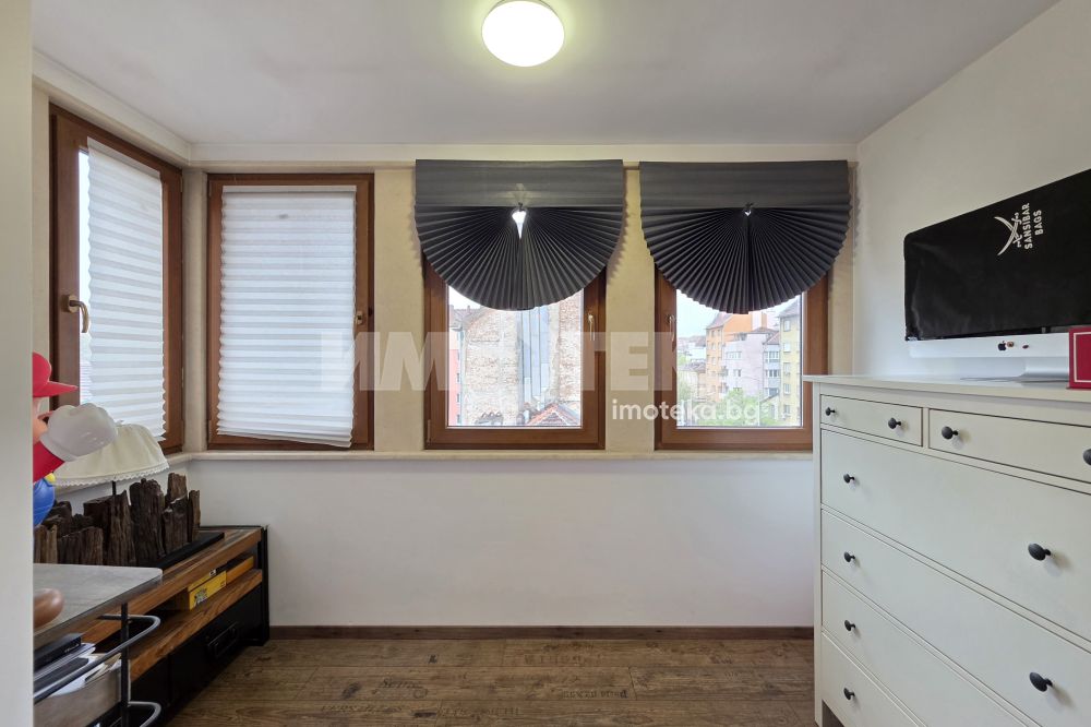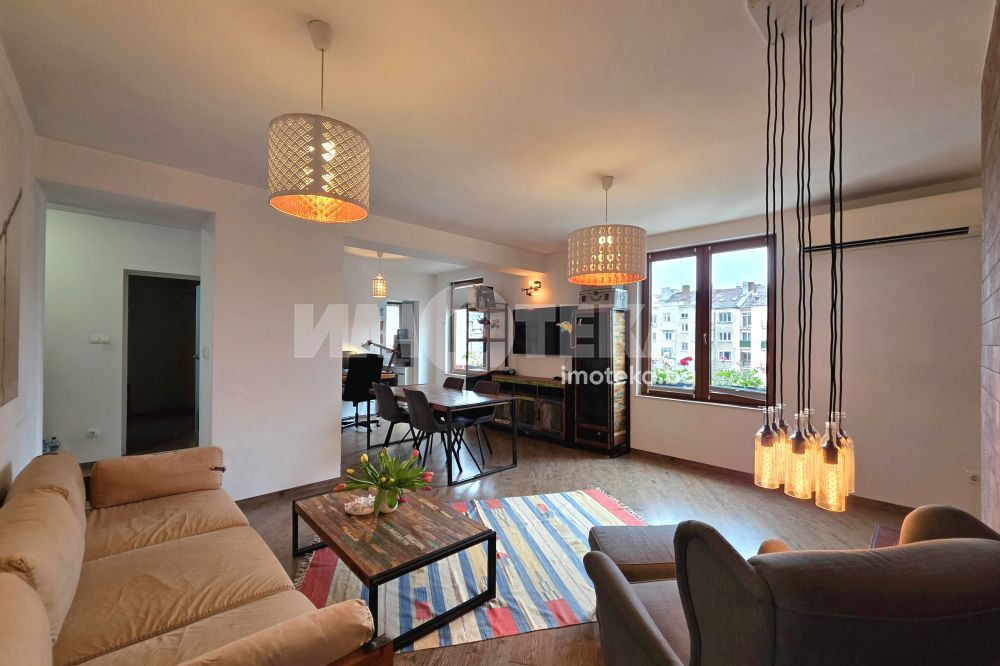 Квадратурата нa aпартаментът е светла площ. Жилището е след направен основен ремонт, изпълнен с внимание към детайла и качествени материали.Разпределението е функционално и удобно, подходящо както за живеене, така и за инвестиция. Просторните помещения, централното местоположение създават усещане за комфорт и градски стил на живот.Имотът е напълно готов за нанасяне, без необходимост от допълнителни инвестиции