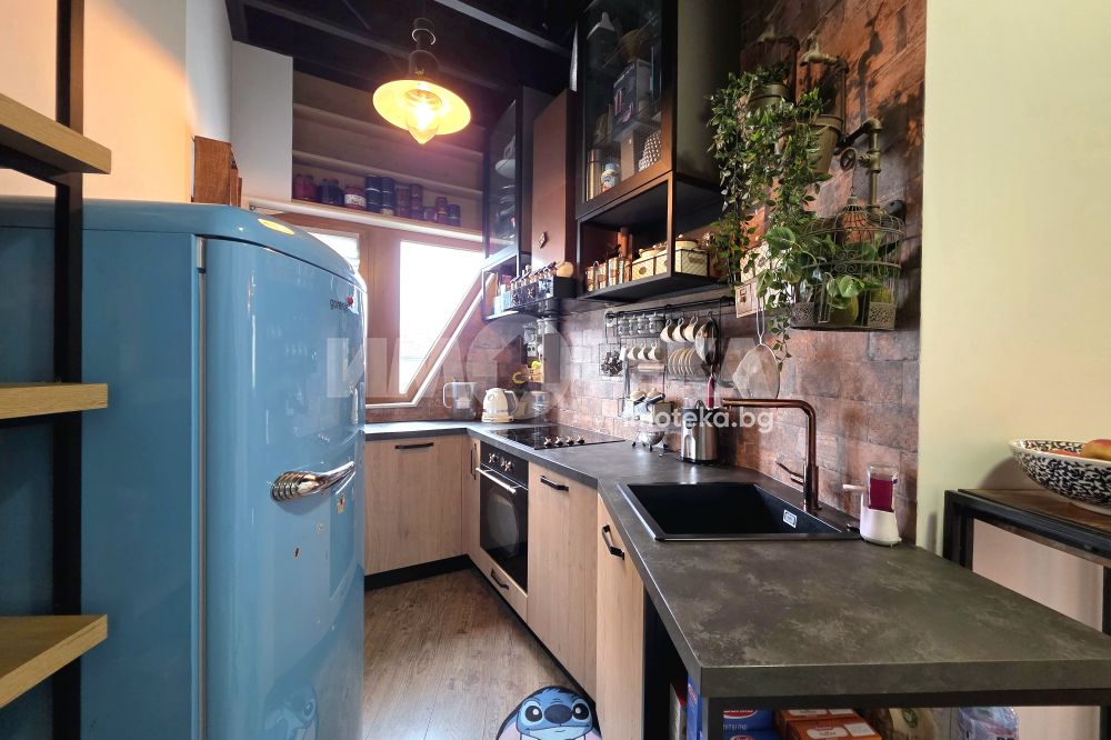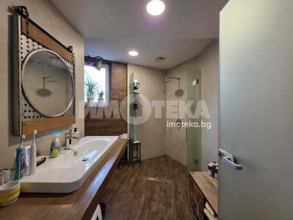 Към апартамента има таванско помещение със санитарен възел, започнат е ремонт и е с частично направена баня.