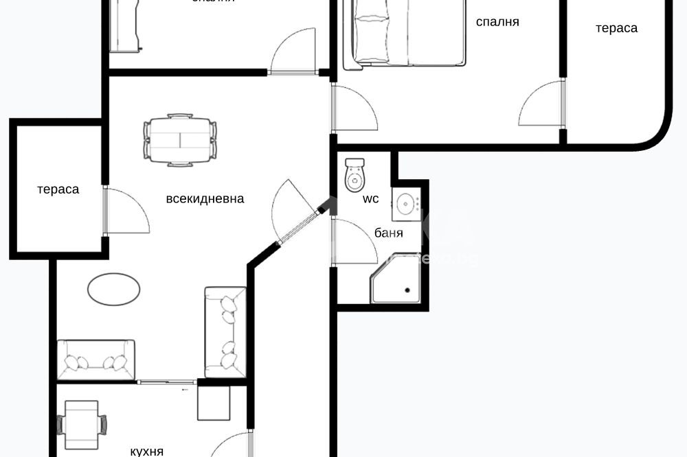 Адрес Недвижими имоти предлага светъл 3-стаен апартамент в тухлена сграда от 2005г. с поддържани общи части и асансьор. Жилището отлично съчетава локация в близост до парк "Заимов" и метростанция "Театрална", опция за директно нанасяне и бъдещи преустройства по вкус на новите собственици. Разпределение: входно анте, компактна кухня, всекидневна и трапезария с излаз на западна тераса, две спални, втора панорамна тераса и баня с тоалетна. Опция за покупка на подземен гараж.