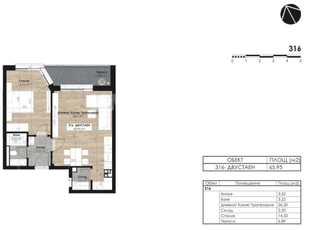 Просторен Двустаен апартамент - спалня 14кв.м и дневна зона 26кв.м.