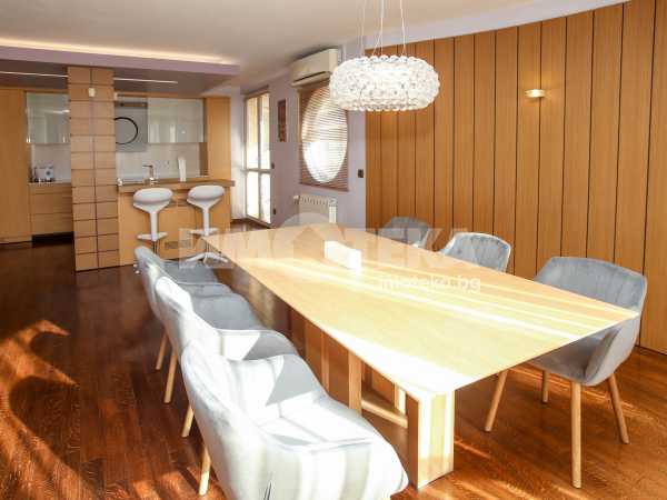 Луксозно ремонтиран и напълно обзаведен многостаен апартамент със застроена площ 253,30 кв.м, разположен на трети етаж над партер. Жилището е с източно и южно изложение, осигуряващо естествена светлина през целия ден.