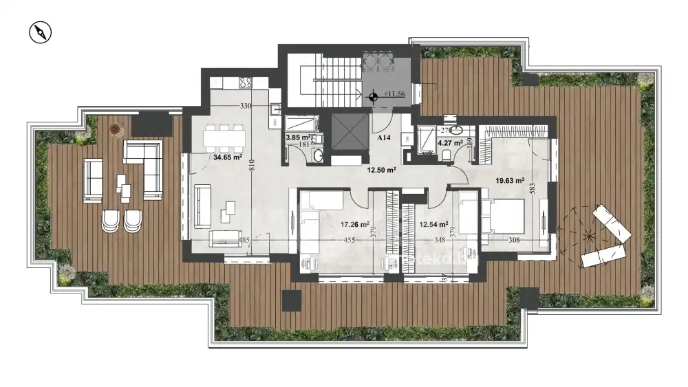 Уникално жилище, заемащо целия последен етаж, с директен достъп от асансьора и зашеметяващи 360° панорамни гледки към Витоша и града. Впечатляваща дневна с високи тавани и панорамни прозорци, елегантна кухненска зона, три комфортни спални и две бани. Огромната тераса от 186кв.м. разкрива безброй възможности за създаване на зони за релакс, барбекю, джакузи или зимна градина – превръщайки този имот в изключително място за живот над града.