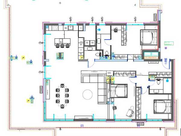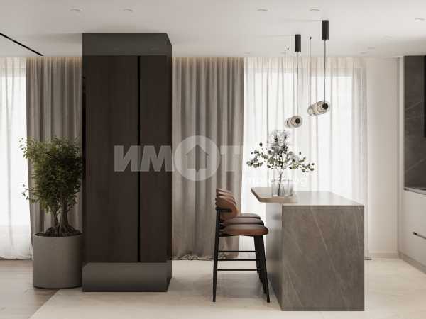 Има изготвен работен интериорен проект за апартамент с три спални, просторна дневна с кухненска част над 50 кв.м., три санитарни помещения, склад.