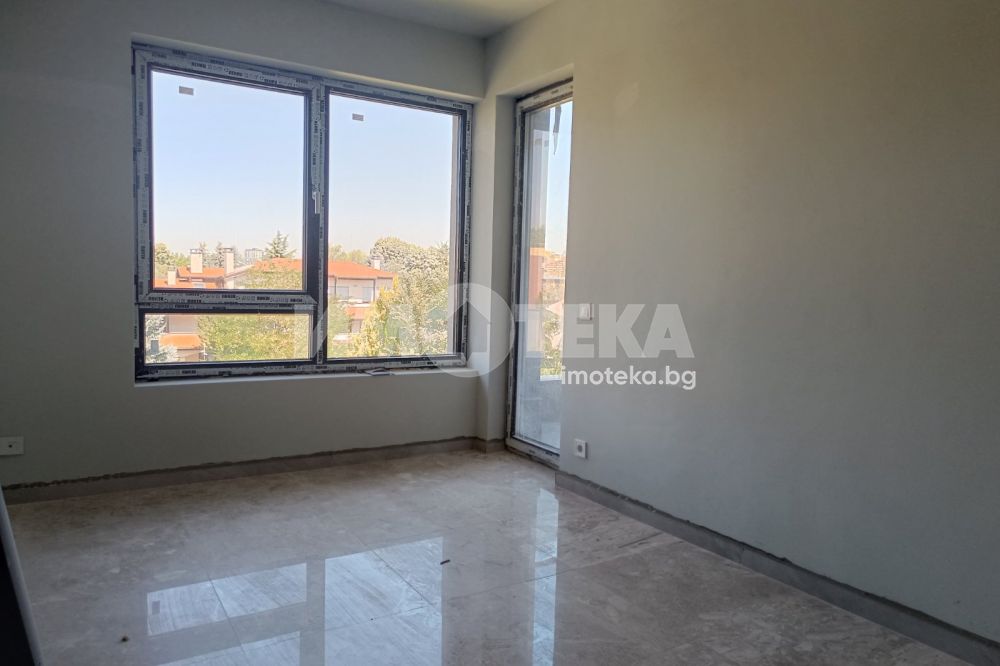 Тристаен апартамент, находящ се в нова сграда в квартал "Витоша" - реален 3-ти етаж. Апартаментът се продава с довършителни работи: луксозни интериорни врати, завършени бани с настилки. Полуобзаведен без кухненско обзавеждане. Към апартамента има мазе, което е включено в обявената цена. Възможност за покупка на парко място в подземния паркинг на сградата на цена от 25 000 евро.