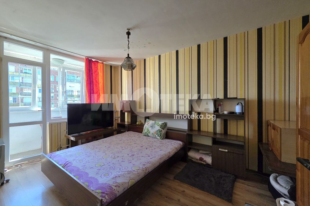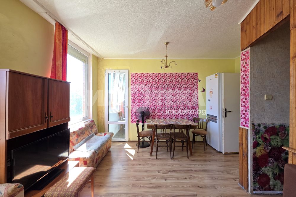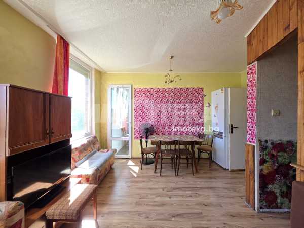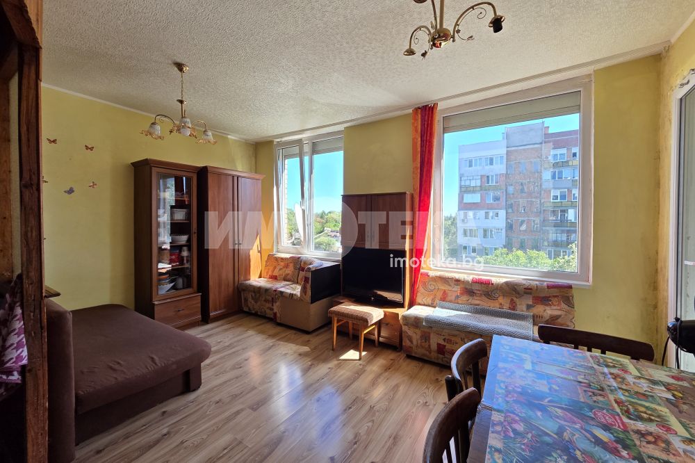 Ексклузивно предложение за двустаен апартамент с чиста застроена площ от 46кв.м., в която квадратура не влиза балкон и общи части на сградата, и прилежащо мазе от 3,46кв.м., със следното разпределение: входно антре, дневна с кухня, спалня, баня с тоалетна и остъклена тераса с излаз от двете стаи. Подменена ВИК инсталация и дограма. Подови настилки на ламинат.