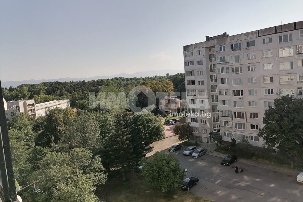Апартаментът е на седми етаж от осеметажен панелен блок. Просторно предблоково пространство и хубава гледка към Северния парк. Отличен вход и общи части, с паркинг пред входа.