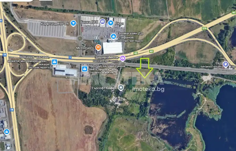 Главен път Е871 ; лице към автомагистрала Хемус; В непосредствена близост до бензиностанция Shell; 20 м от спирка на автобуси 14 и 18 , които имат връзка с автогара Изток;