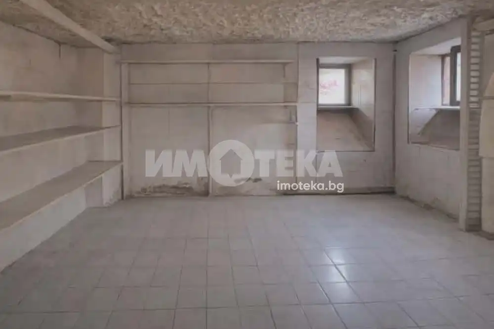 Продава се обособено еднопространствено помещение със. статут на магазин за продажба на пакетирани храни с идеални части 23 м2, както и 1/16 от правото на строеж върху земята.