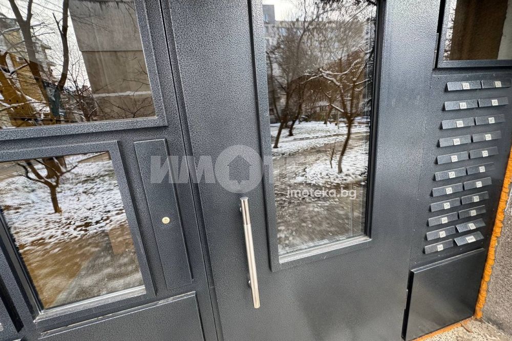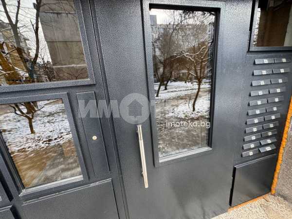 Апартаментът е панелна гарсониера преустроена в двустаен апартамент разположен на 5-ти етаж от общо 8. Има и прилежащо мазе. Сградата в който се намира апартамента е с много добър вход с контролиран достъп и асансьор, сменена входна врата, сменена дограма, предстои пребоядисване на целия вход. Непосредствено пред блока има зелена площ и детска площадка