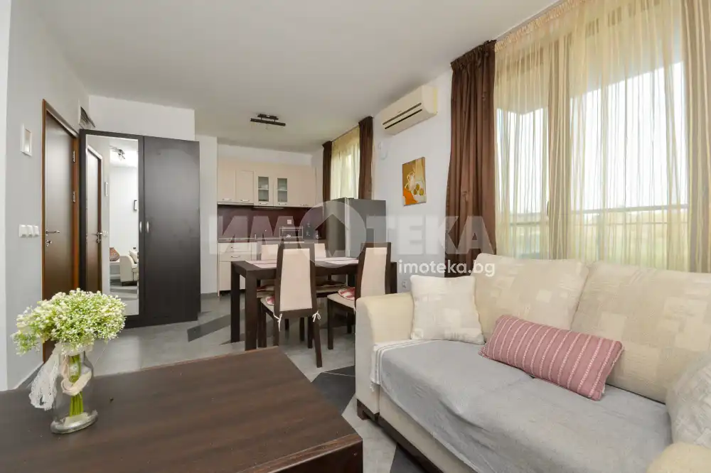 Предлагам Ви тристаен, обзаведен апартамент в Созопол. Апартамента е разположен в сграда находяща се на територията на комплекса Green Life и по точно новата му част - Secret Garden.