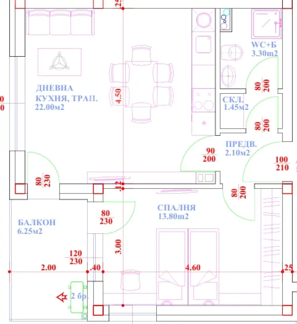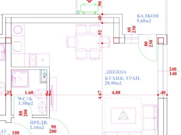 Двустаен апартамент на 3 жилищен етаж с площ 66м2