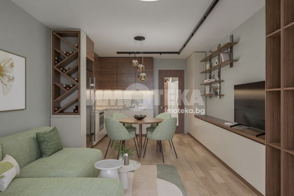 Състои се от всекидневна с кухня и тераса, голяма спалня тераса, баня с тоалетна, отделно мокро помещение, широко антре.
