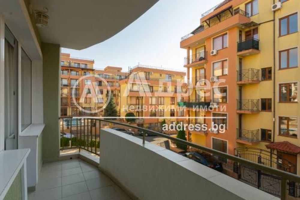 Двустаен апартамент на метри от плажа на Свети Влас, 66 кв.м, на втори етаж. Състои се от дневна с кухненски бокс, спалня, санитарен възел и тераса. Дворът е добре поддържан, има басейн. На 540 метра от центъра на Свети Влас.