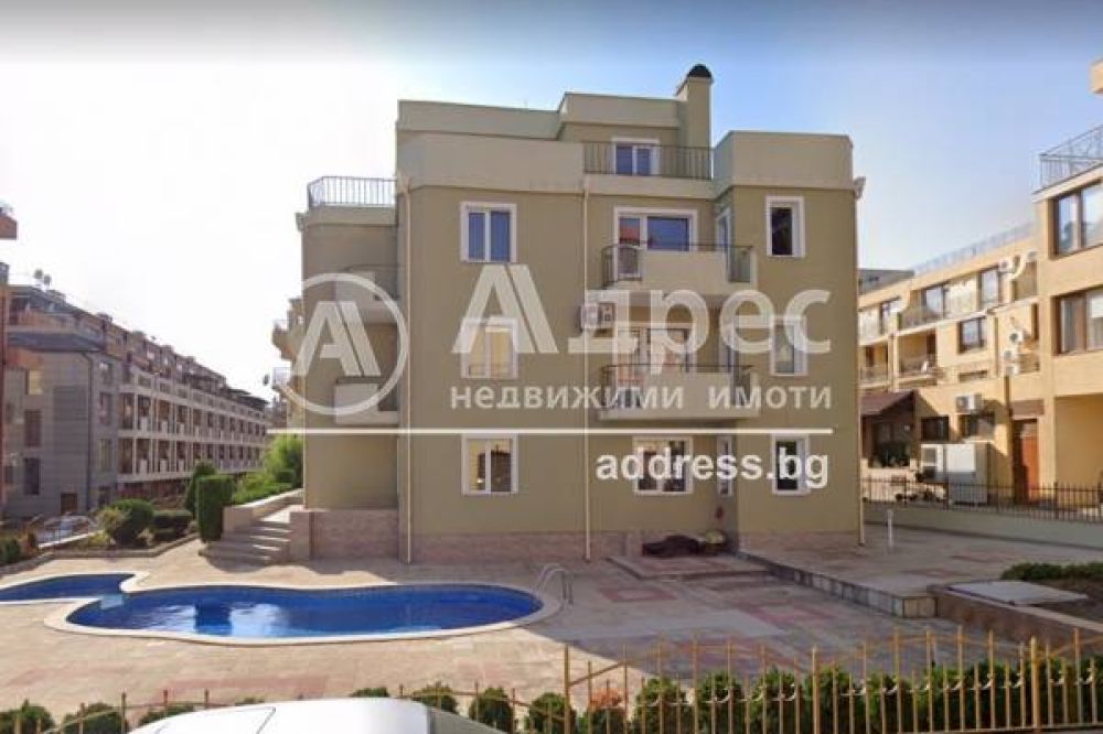 Двустаен апартамент на метри от плажа на Свети Влас. Имотът се намира в жилищна сграда, площ 59 кв.м, на втори етаж. Състои се от дневна с кухненски бокс, спалня, санитарен възел и тераса. Дворът е добре поддържан, има басейн. На 540 метра от центъра на Свети Влас.