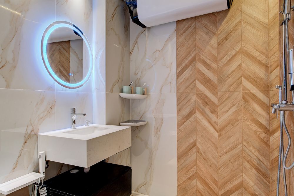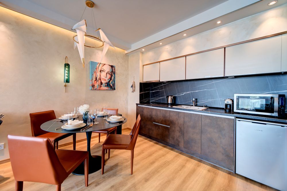 Обзавеждането e ново и стилно с изградена система "Умен дом", като управление на осветление и уреди, завеси чрез сензори, гласов контрол или посредством приложение на телефона- Алекса.