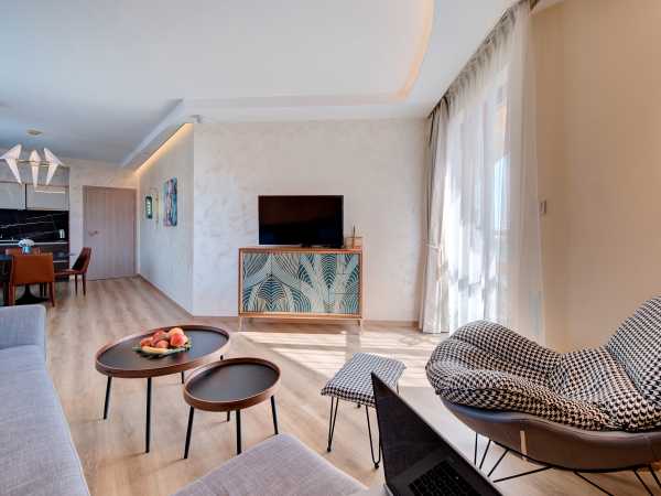 Обзавеждането ново и стилно с изградена система "Умен дом", като управление на осветление и уреди, завеси чрез сензори, гласов контрол или посредством приложение на телефона- Алекса.