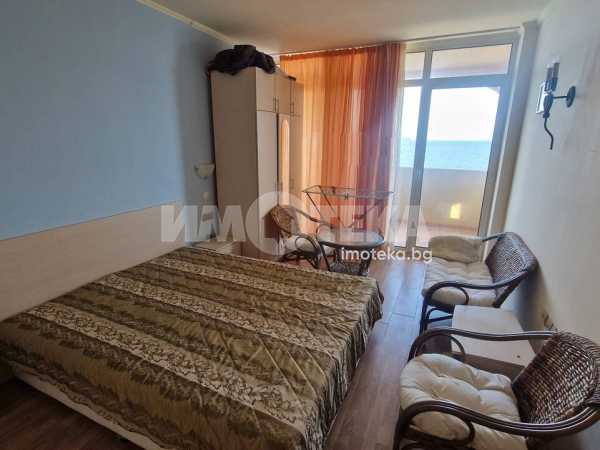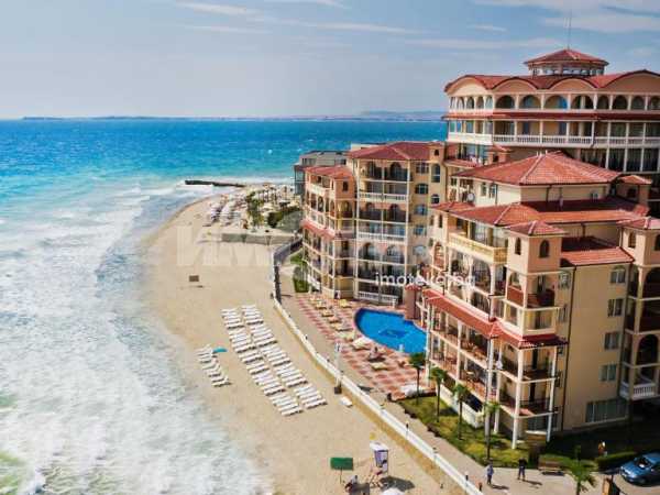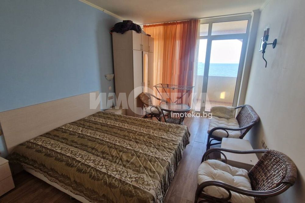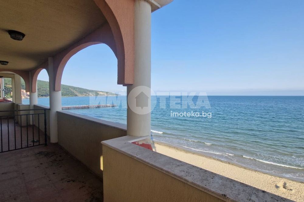Апартаментът се намира на първа линия на морето и терасата е с директен излаз на плажа.