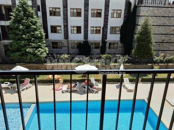 Имотът е с площ от 34 кв.м. , етаж 2. Състои от дневна с кухненски кът, баня с тоалетна и тераса. Напълно обзаведено и оборудвано. Безплатен паркинг за собствениците на комплекса.