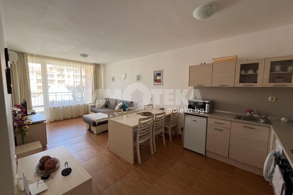 Тристаен апартамент на метри от морския бряг в гр. Свети влас. Площ на имота 97 кв. м., етаж 3 от 4, асансьор. Състои се просторна всекидневна с кухненски кът и трапезария, две спални, едната със собствен санитарен възел, отделен санитарен възел, две тераси и просторна всекидневна. Едната от терасите гледа към басейна, а другата има изглед море!