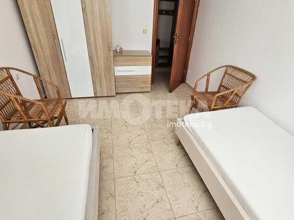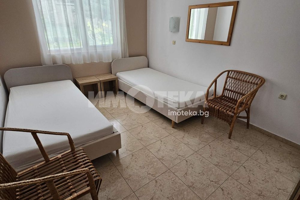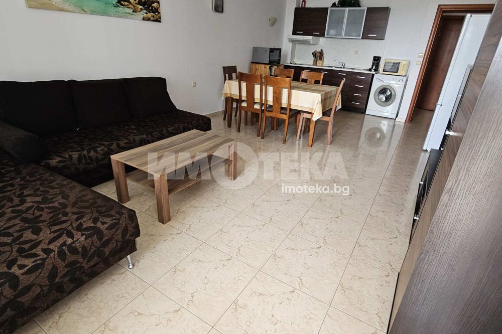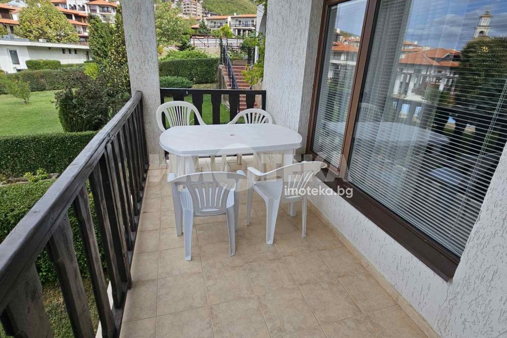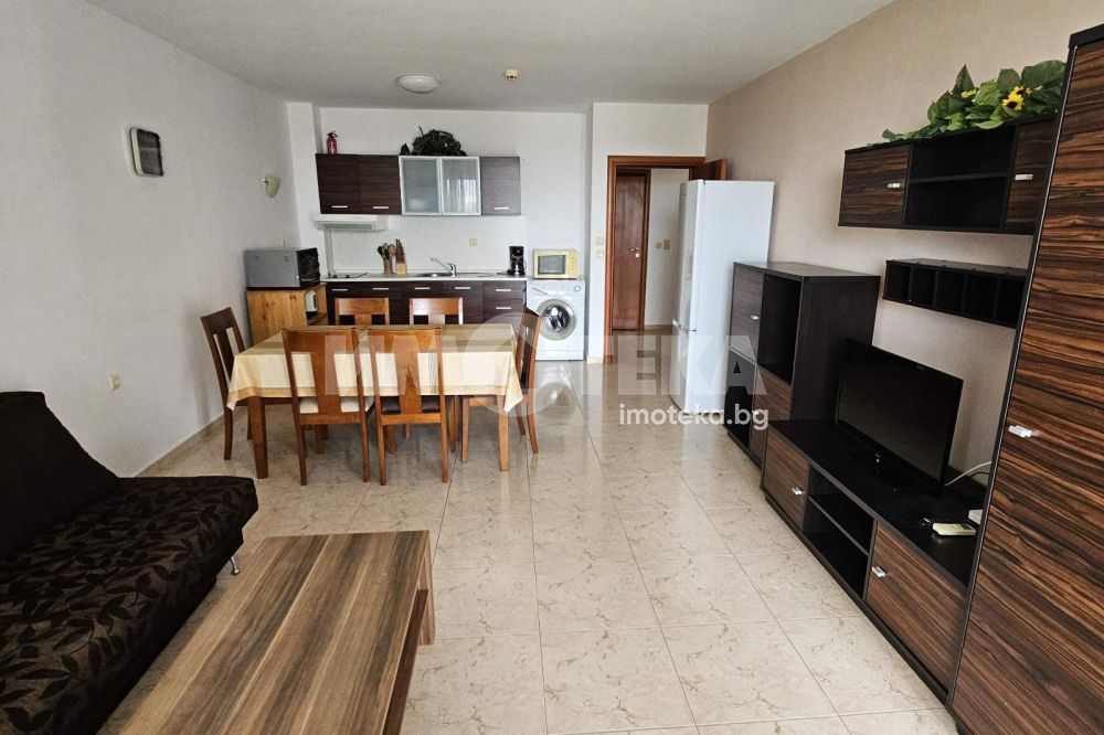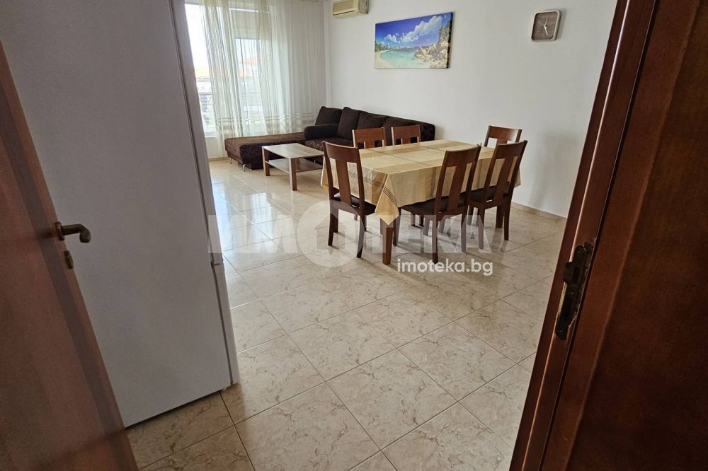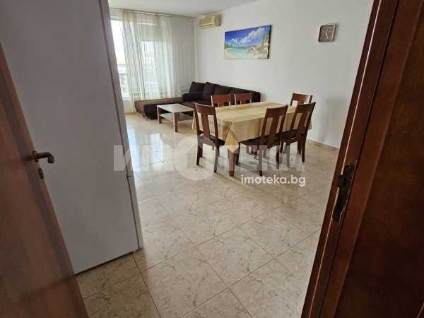 Просторен тристаен апартамент на 100 м. от морето в гр. Свети Влас. Затворен бутиков комплекс на втора линия в най-атрактивната част на курорта. Площ на имота 85 кв. м., етаж 1 от 3, висок партер с пряк излаз от терасата към градината и басейна. Състои се от антре, дневна - трапезария с кухненски кът и тераса, две спални, две санитарни помещения. Предлага прекрасна панорама към морето и планината, пред апартамента е приватна част от парка. Комплекса е тих с голям собствен парк с басейни. Напълно обзаведен и оборудванб готов за ползване или отдаване под наем. Съществува възможност за разширение до 140 кв.м. чрез обединяване със съседният апартамент.