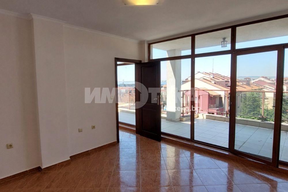 Просторен тристаен апартамент в град Свети Влас! Прекрасна морска панорама 3 минут от морето. Площ на имота 142,48 кв. м., етаж 7, асансьор. Завършен до ключ, монтирана кухня и оборудвано санитарно помещение. Състои се от коридор, дневна с кухненски бокс, две спални, баня с тоалетна, три тераси. Такса поддръжка 10 евро на кв. м. на година.