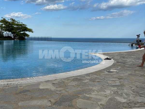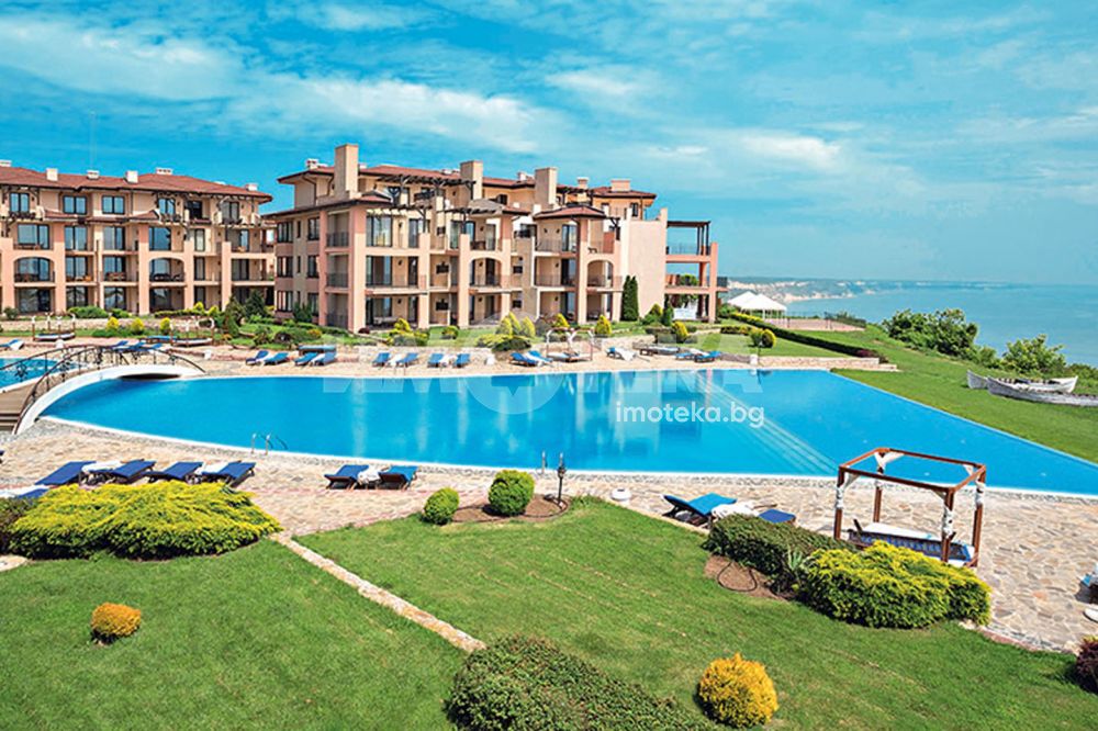 Продава се апартамент разположен на първи партерен етаж в прекрасен затворен комплекс на брега на морето. Жилището е със статут на апартамент. Състои се от антре, стая с кухненска, трапезарна и спална част, баня с душ-кабина, тераса-веранда. Състоянието е много добро и се продава с наличното обзавеждане. Има възможност за свободно паркиране в района.
