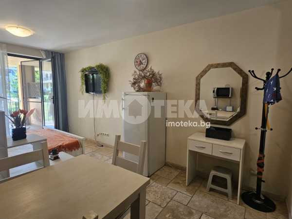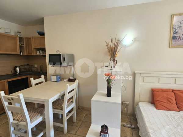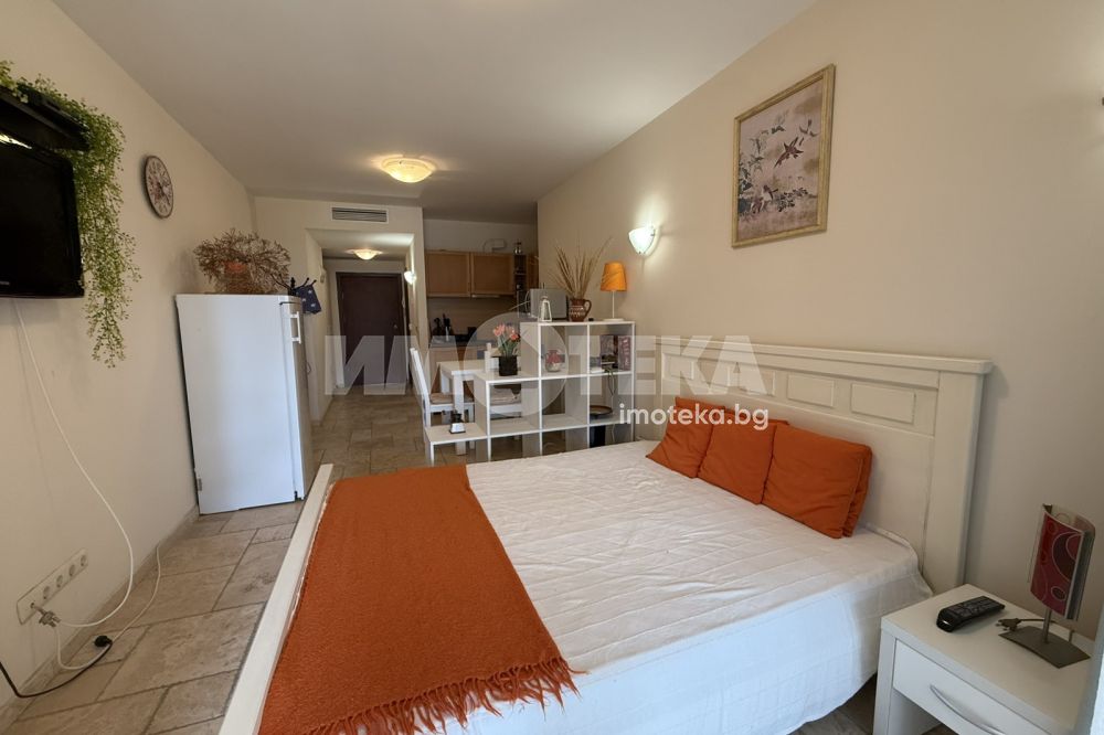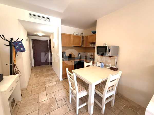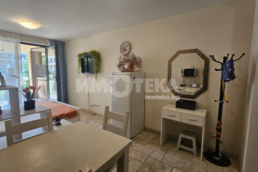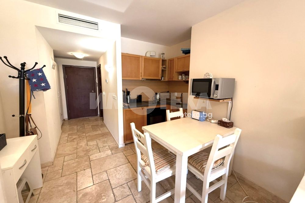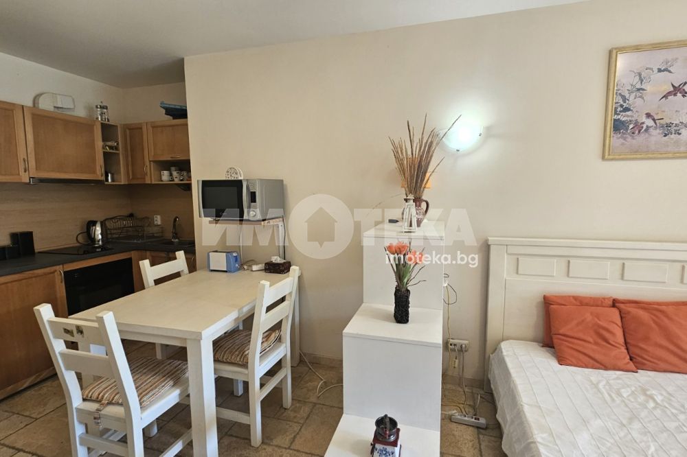 Едностаен апартамент, удобен и компактен, напълно обзаведен и готов за използване в затворен комплекс с чудесна инфраструктура, отличен за почивка или постоянно обитаване.