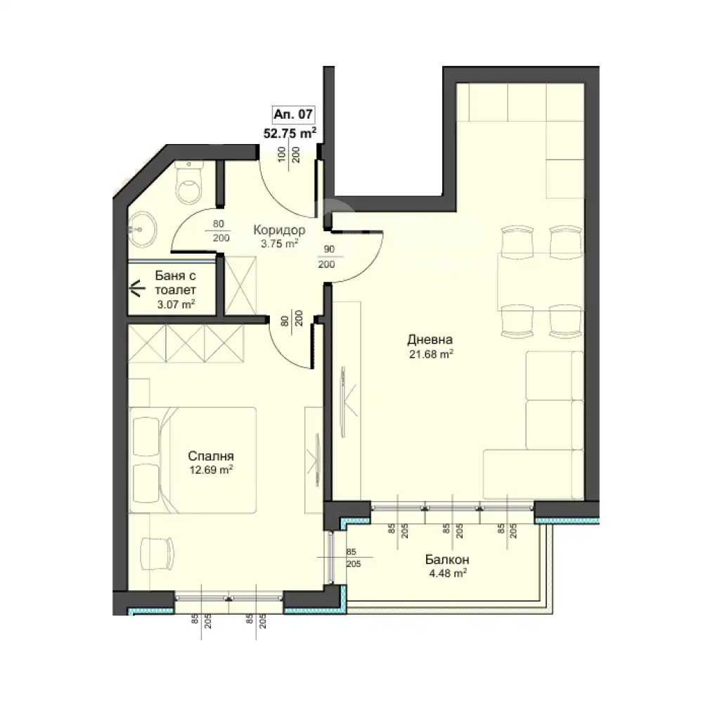 Светъл и просторен двустаен апартамент в чисто нов жилищен комплекс в един от най-спокойните райони на град Варна - Аспарухово.