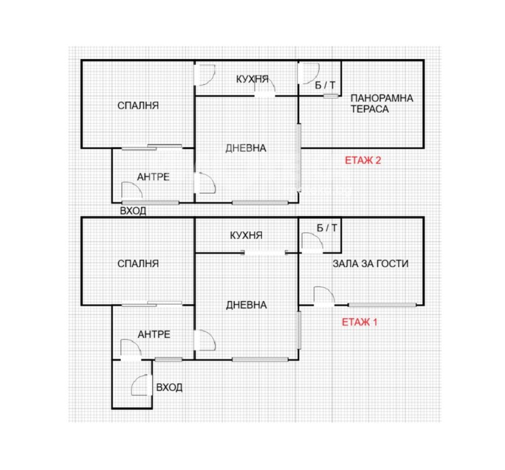 Имотът е с отделни входове за всеки етаж, което го прави изключително подходящ както за две семейства, така и за инвестиция с цел отдаване под наем.