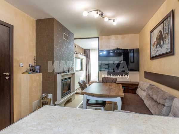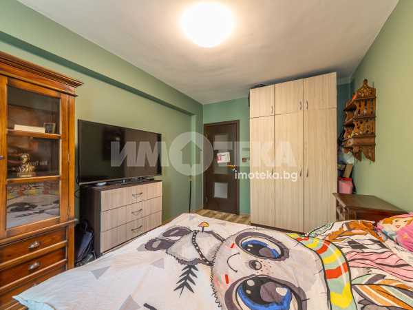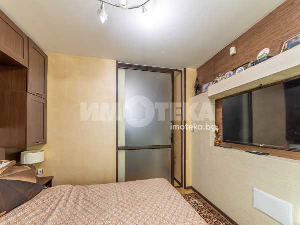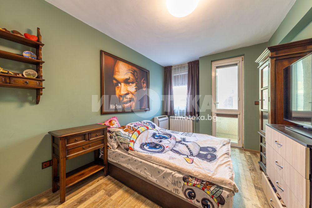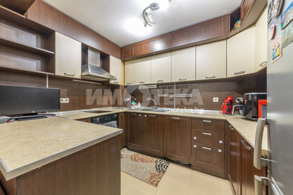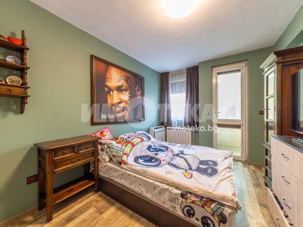Тристаен апартамент с чиста площ 85 кв.м., преустроен в четиристаен с три спални и хол с кухненски бокс, тоалетна, отделно баня, перално, дрешник/килер, две остъклени тераси. Към имота има изба 6 кв.м. и допълнителна стая на стълбищната площадка около 10 кв.м. - към момента е фитнес. Има опция за покупка на партерен гараж + паркомясто, към който има прилежаща стая за инструменти, инвентар, авто принадлежности.