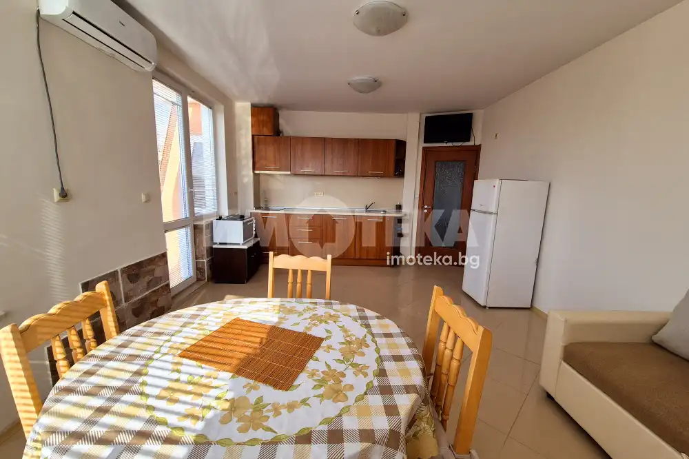 Двустаен, обзаведен апартамент в кв. Бриз. Жилището се състои от просторна дневна с кухненска част - обзаведена с бяла техника, мека мебел, климатик. Спалня - обзаведена. Баня с тоалетна. Тераса. Не се допускат домашни любимци.