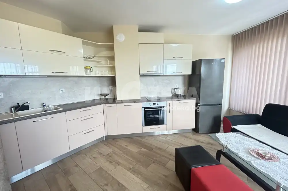 Предлагаме Ви обзаведен двустаен апартамент в горната част на кв. Бриз. Имота се състои от дневен тракт с обособена кухненска част , кът с мека мебел и кът за храненен с маса за хранене. Спалня с ледгло спалня , баня с тоалет и една тераса. Жилището се отплява посредством климатик. В наемната цена е включено едно парко място .