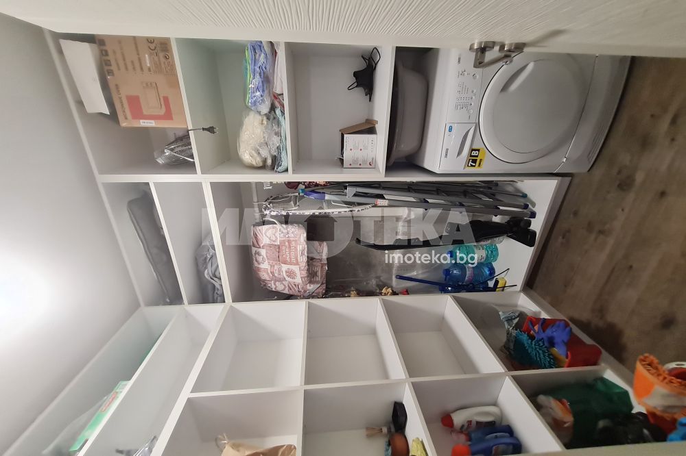 Състои се от просторна дневна с мека мебел,маса за хранене;вградена кухня,оборудвана с бяла техника,вкл.съдомиялна машина;спалня с легло-спалня,гардероб;баня-тоалет,килер,в който е поставена и сушилня.