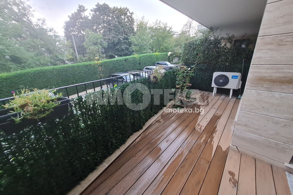 Към апаптамента има красиво оформена тераса с цветя и кът за отдих.