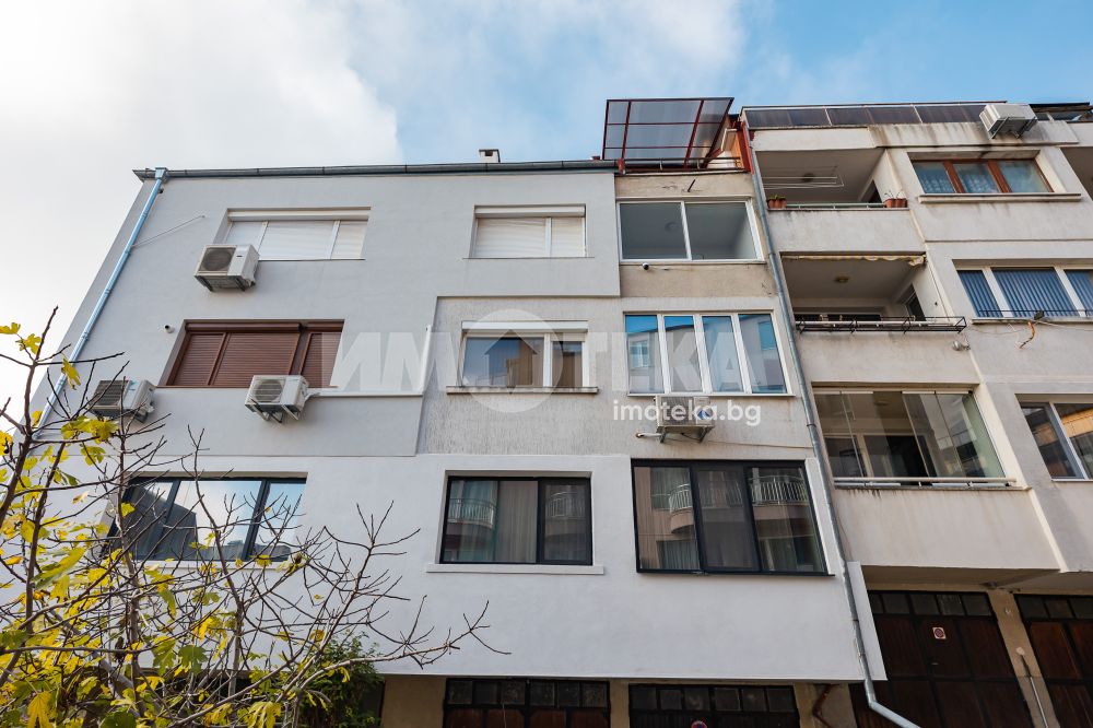 Двустаен апартамент с площ от 50 кв.м.,разположен на 1 етаж в тухлена сграда. Имотът се състои от дневна с трапезария и спален кът, баня с тоалет, сутеренно помещение 22 кв.м. с прозорци свързано с апартамента, което е обособено като втора спалня или кабинет. Отличен имот за инвестиция.