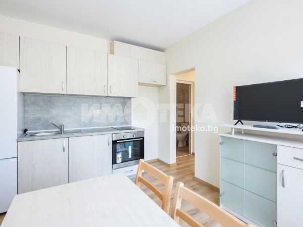 Новообзаведен, двустаен апартамент с морска панорама. Жилището се състои от слънчева дневна разпределна на кухненска част - бяла техника, вкл. съдомиялна, холова част, празно пространсто, което бъдещият наемател може да оформи като кабинет. Спалня - обзаведена. Баня с тоалет. Килер. Тераса с гледка към морето. Два климатика. Външно паркомясто.
