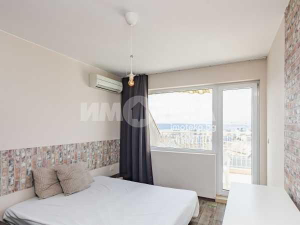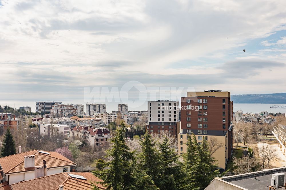 Жилището е с южно изложение, разположено на пети етаж в сграда с асансьор, и предлага нескриваема морска панорама.