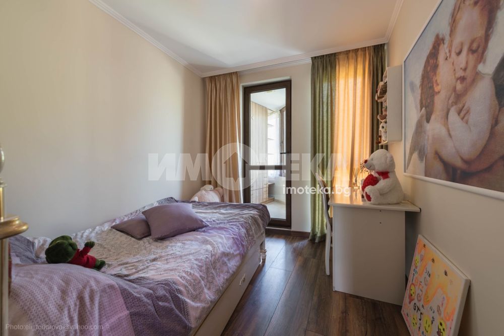 Жилището се състои от просторен дневен тракт, три спални,две бани ,на всякъде е с подово отопление.Продава се напълно обзаведено.Климатици мултисплит система.