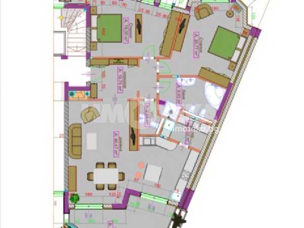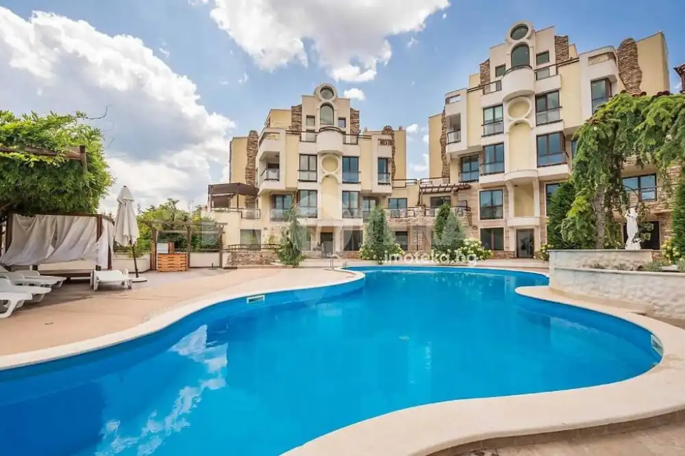 Тристаен апартамент, с възможност да се преустрои в многостаен. Има 70 кв.м тераса с документ да се усвои. Чистата площ на апартамента е 135 кв.м.. Една веранда към басейна 26 кв.м и задна тераса 70 кв.м. с документи за преграждане. Може да се закупи външно парко място.