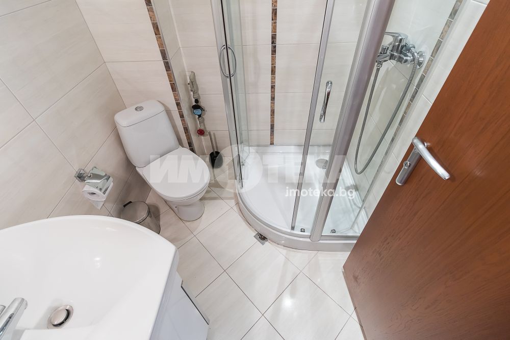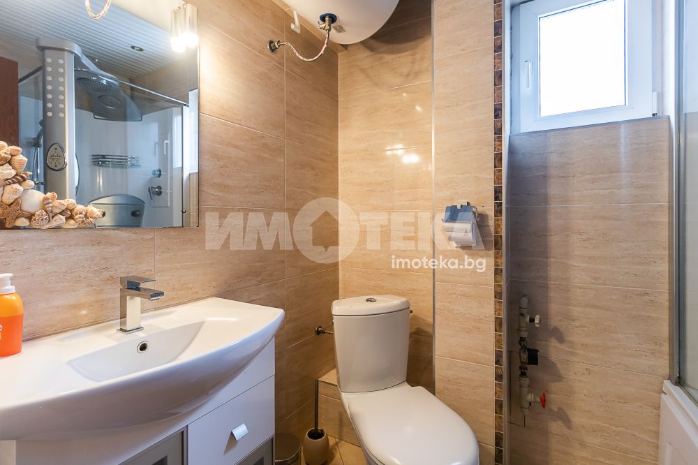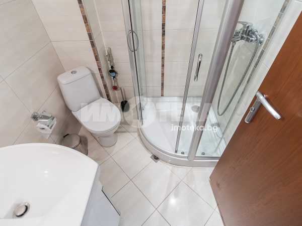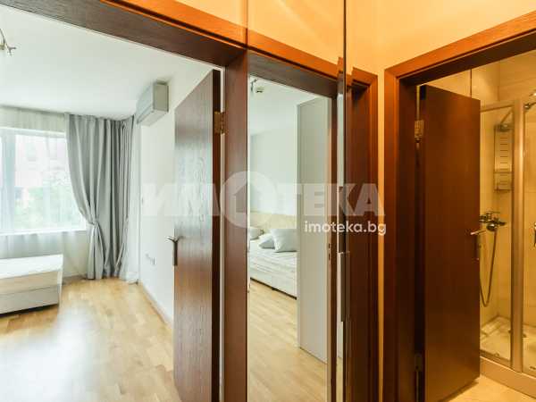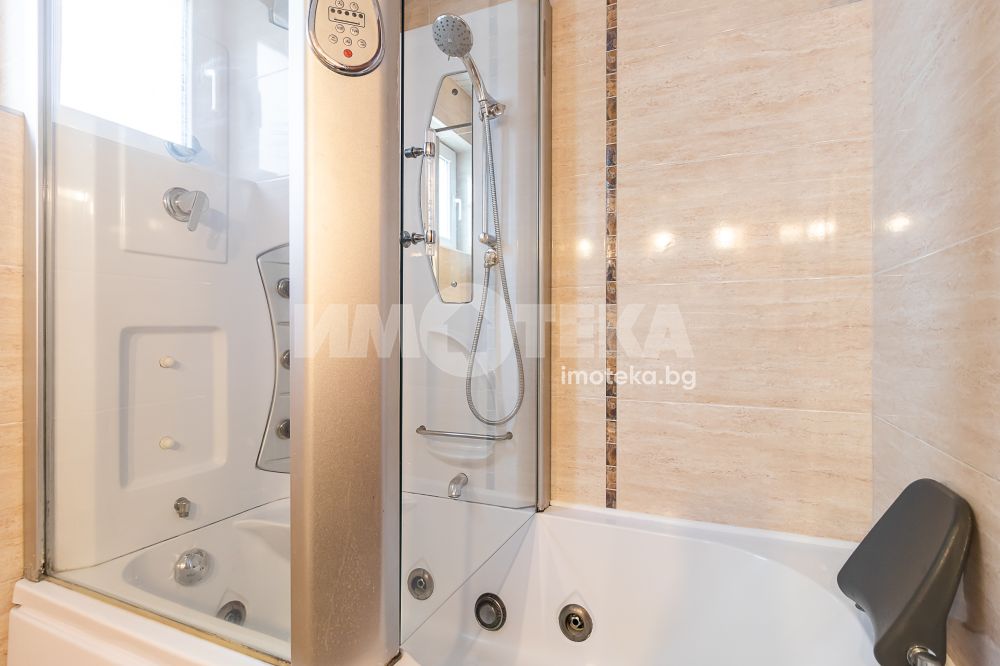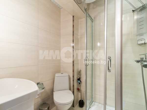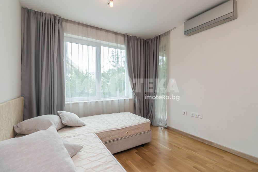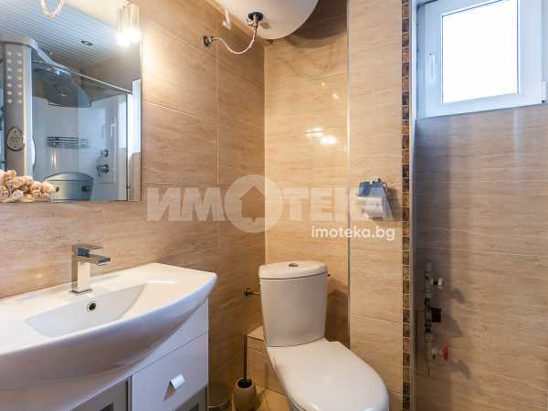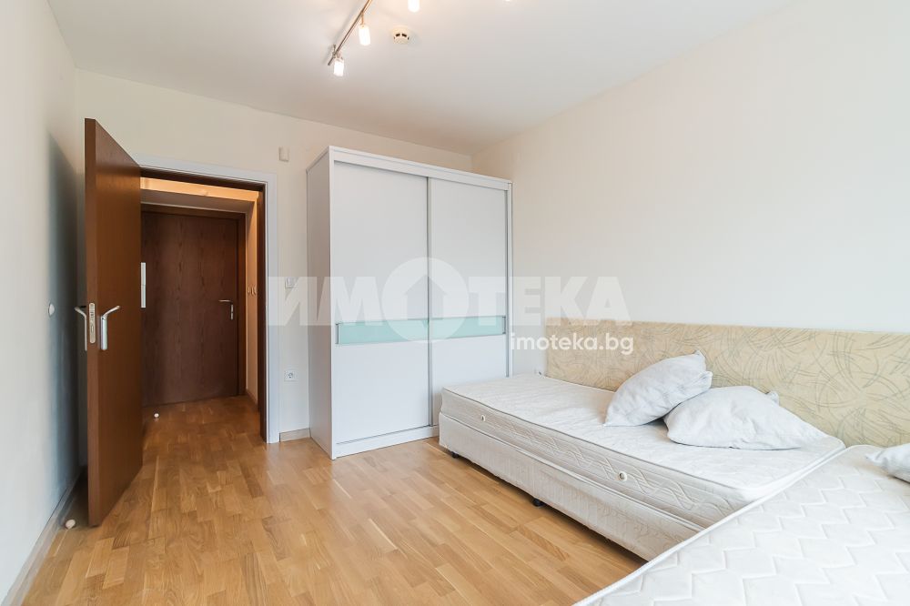 Дизайнерски обзаведен тристаен апартамент, ново строителство. Състои се от просторна дневна /около 50кв. м/ с мека мебел, холна масичка; модерна вградена кухня, оборудвана с бяла техника /вкл.съдомиялна машина/, маса за хранене; две спални със санитарни възли към всяка от тях; две тераси.