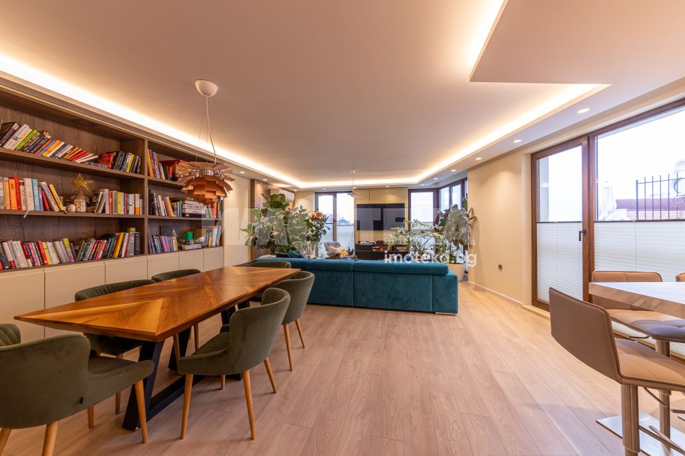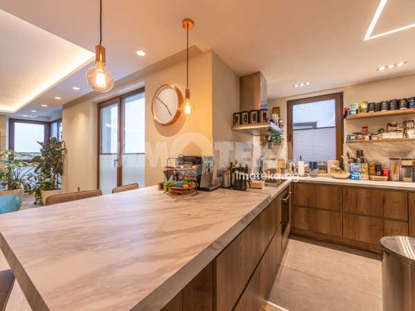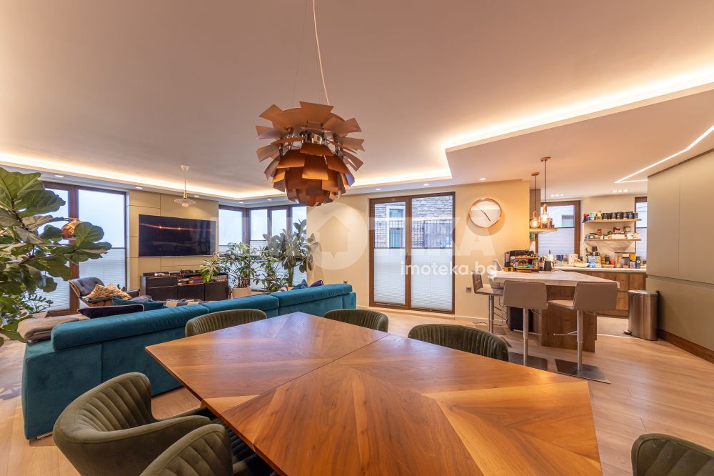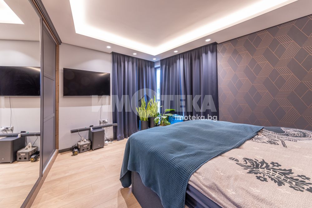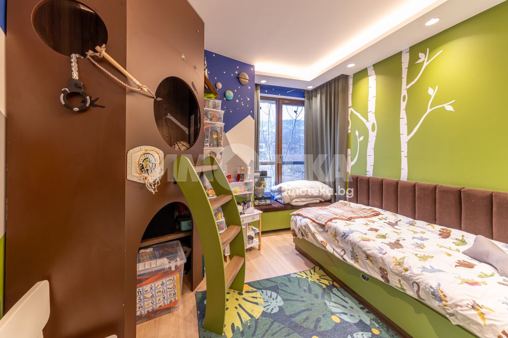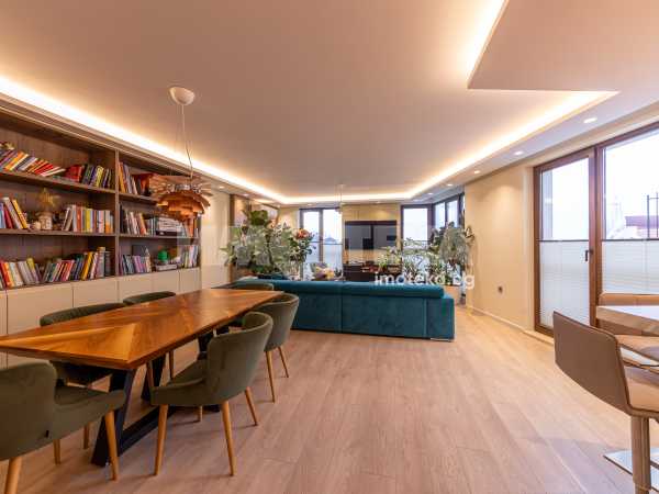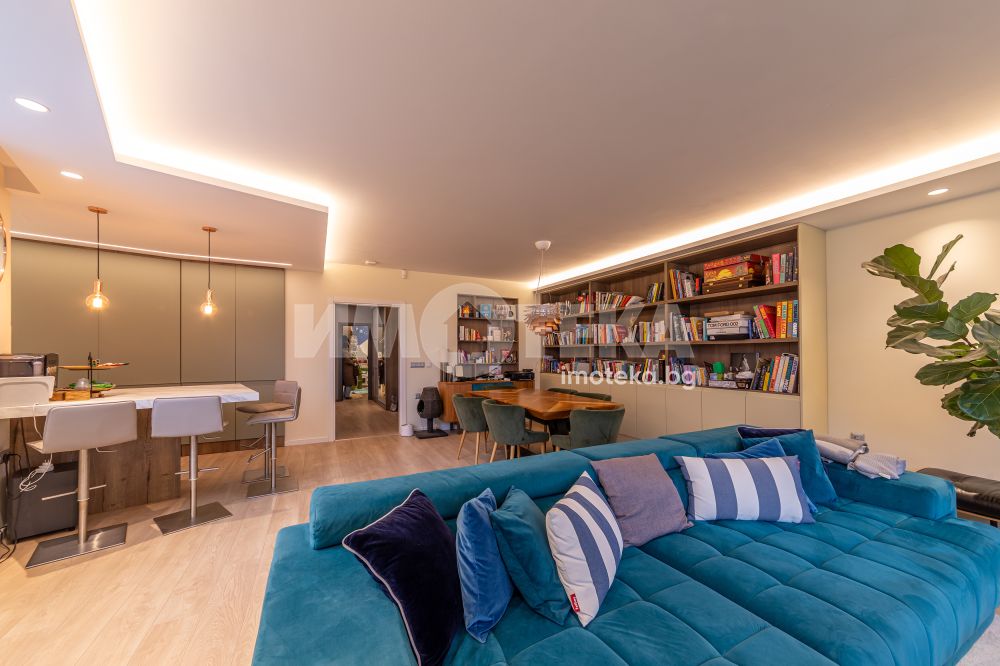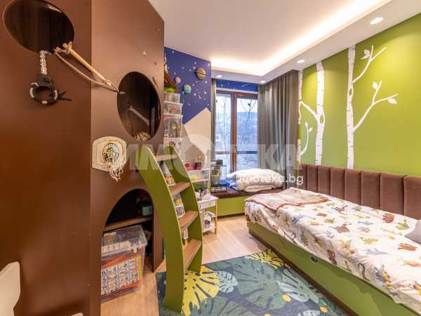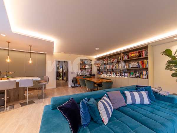 Напълно обзаведен и оборудван с висок клас мебели и уреди тристаен апартамент на среден етаж с площ от 131 кв.м.Имотът се състои от просторна дневна с кухненска част,родителска спалня,детска спалня,голяма баня с тоалет,перално помещение и тераса с гледка към басейна на комплекса.