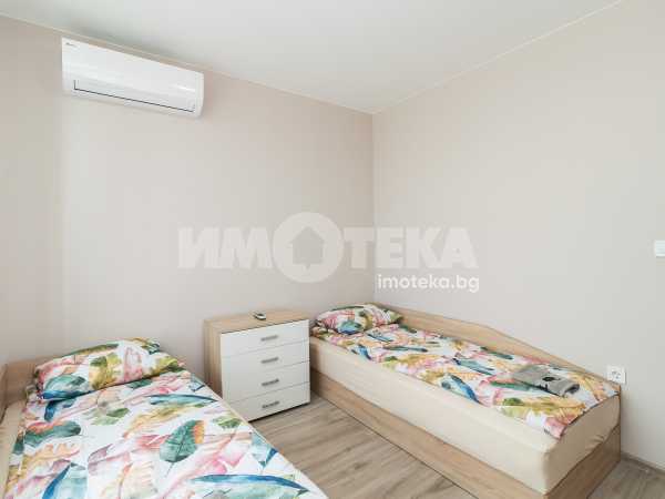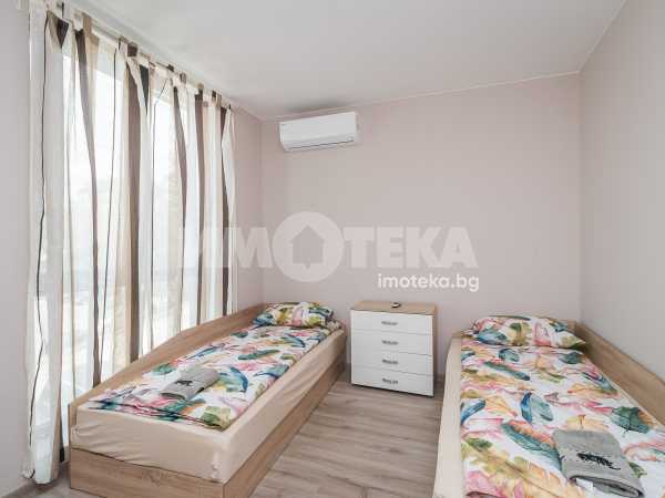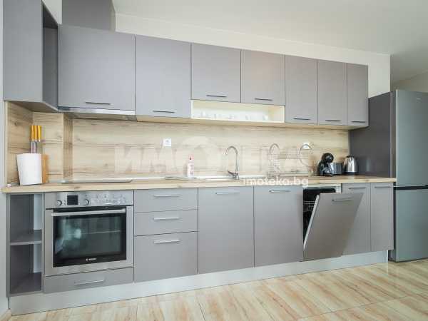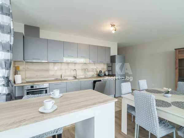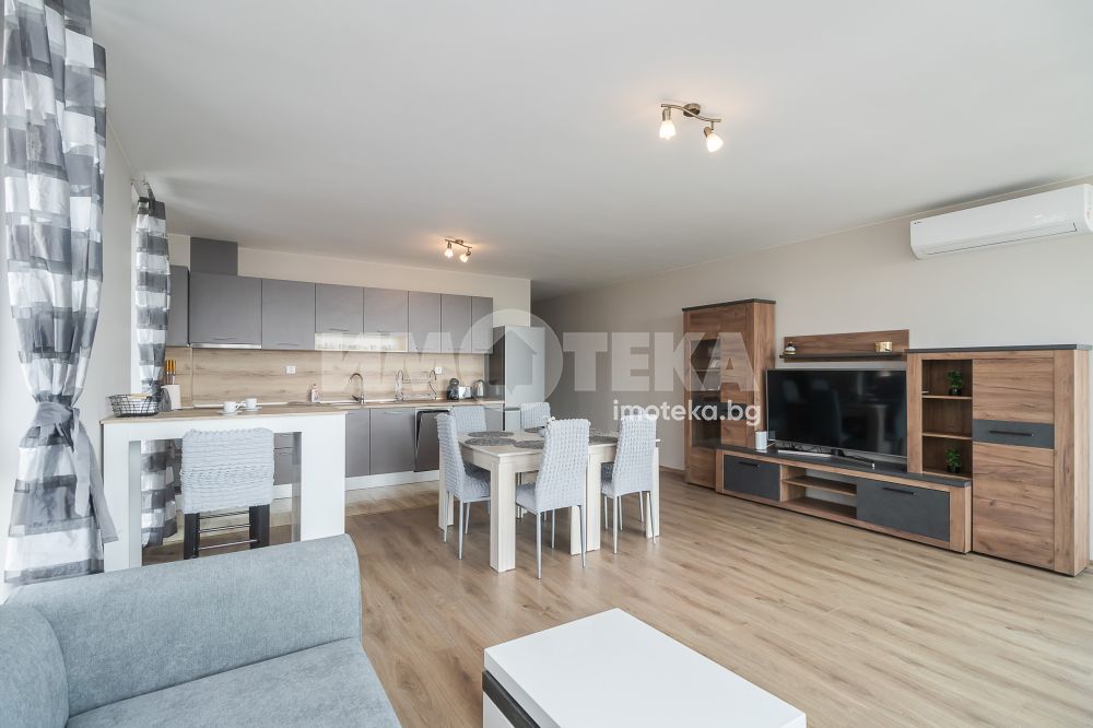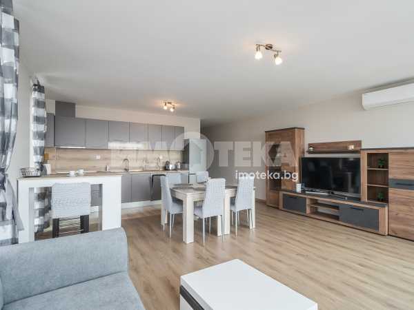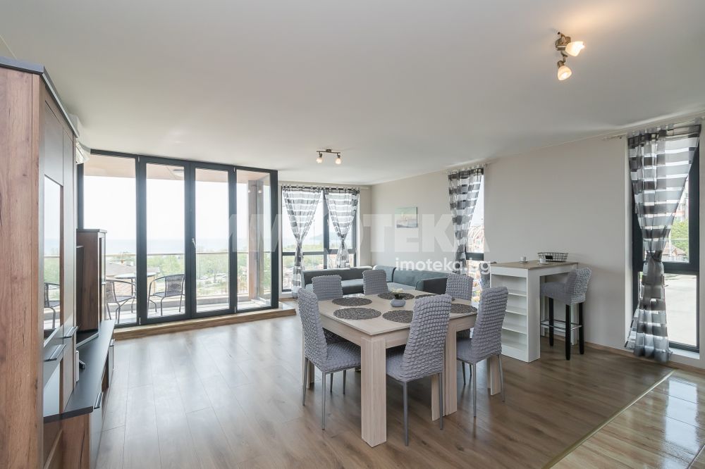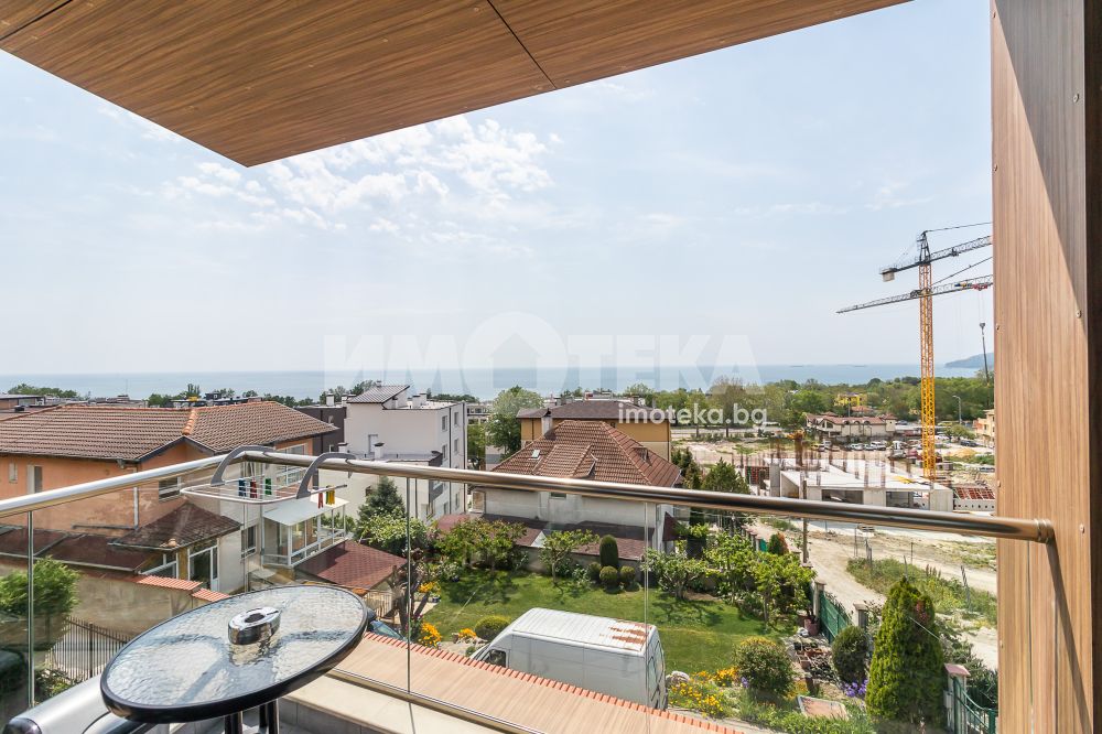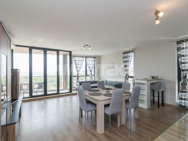 Тристаен, обзаведен апартамент с морска панорама. Жилището се предлага напълно обзаведено и оборудвано. Състои се от просторна, южна дневна с мека мебел, кухненска част /съдомиялна/, тераса с гледка към морето Две спални, баня с тоалетна. Три климатика. Към жилището има паркомясто. Отдава се дългосрочно.